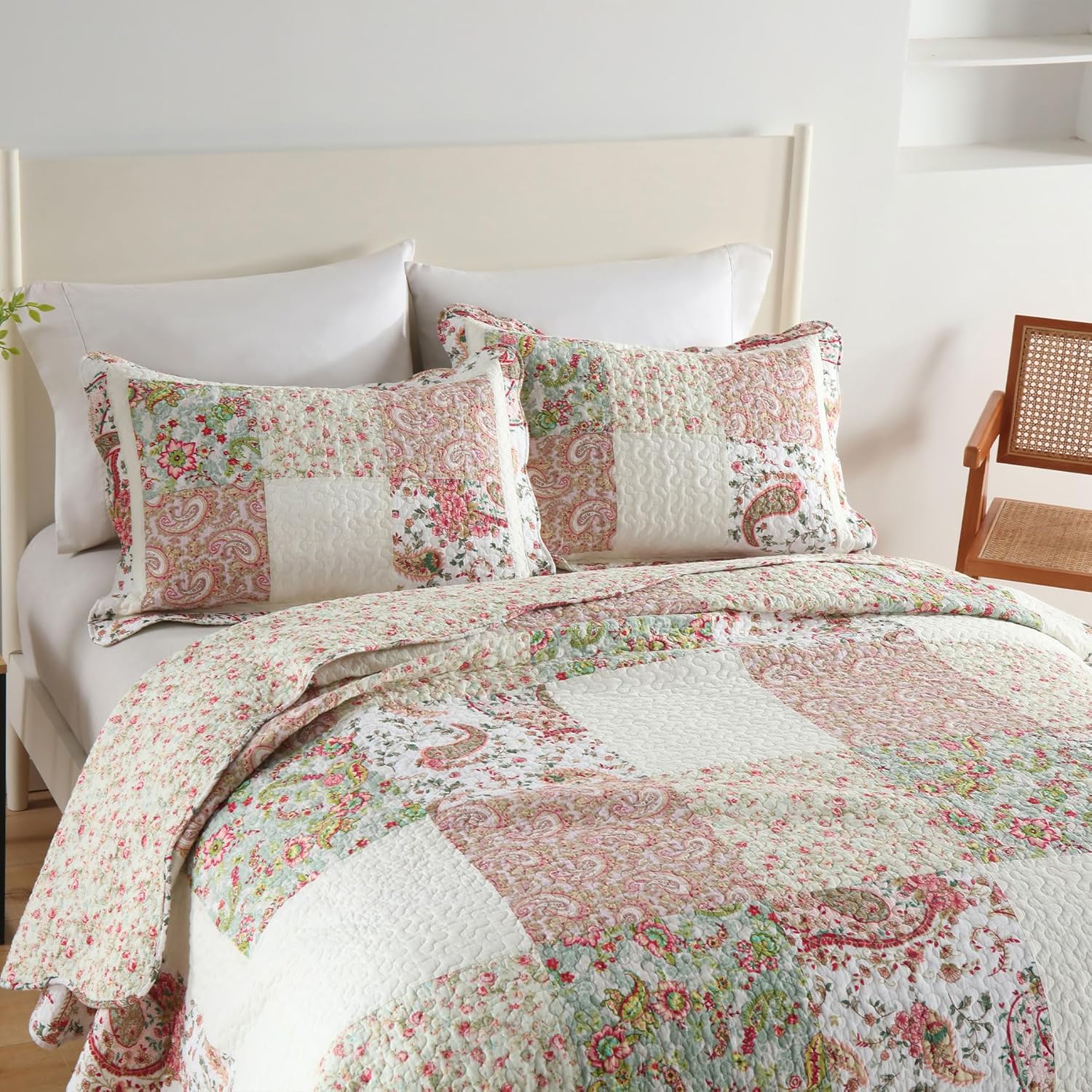 - Elegance in Home Decor: This bedding set includes a king-size quilt (96x108 inches) and two matching pillow shams (20x36 inches), all crafted with precision. The Secgo comforter set combines patchwork craft with boho patterns, elevating your sleeping space to new heights. Surprise your loved ones with this elegant, cozy gift—ideal for Mother's Day, Women's Day, Christmas, or any special occasion.