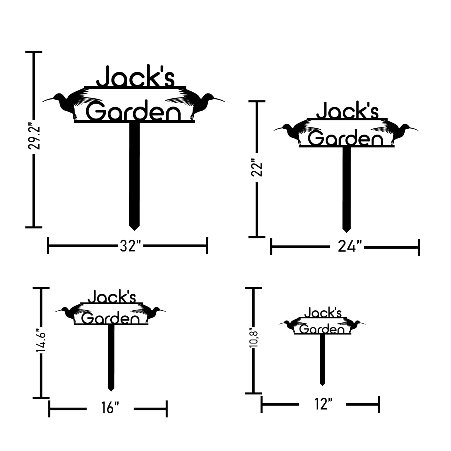 - DIMENSIONS : For garden decors, sizes shows total size including stake height. When you order it 12" size, it'll be 12" total length including stake