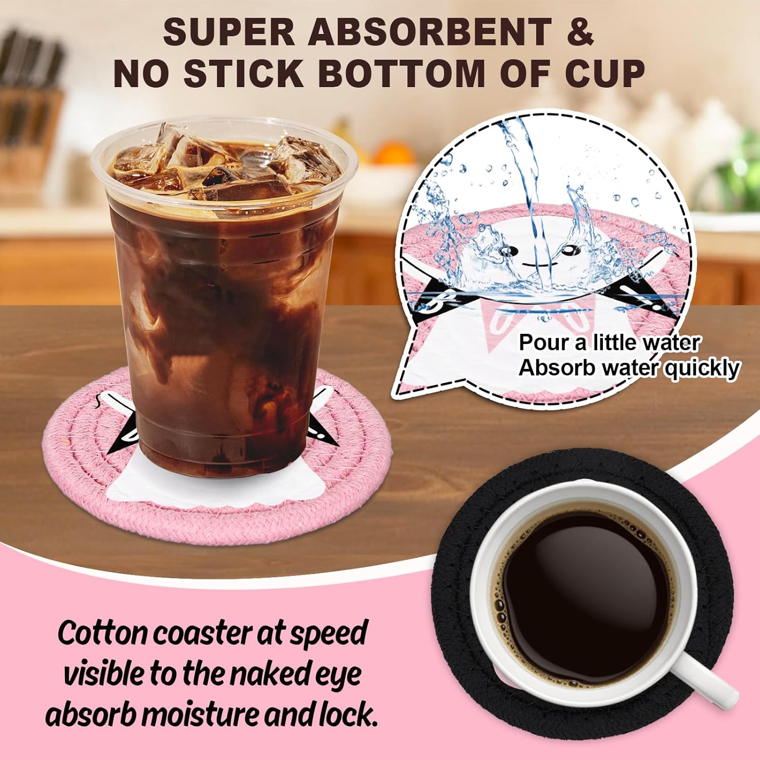 - Wonderful Decoration - Our cute pink cotton coasters can be applied in various occasions including home, kitchen, hotel, bar, cafe, restaurant, office and many other scenes, will also be great gifts and decorations in Halloween, holiday, birthday, baby shower and more, adding festive atmosphere.