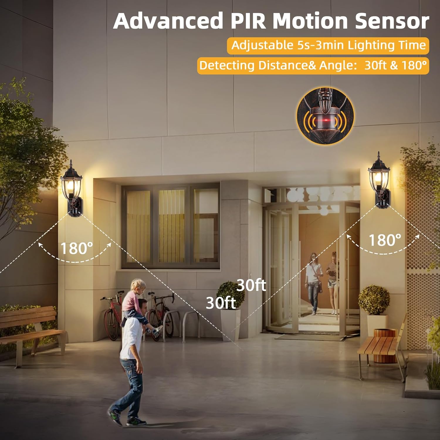 - Classic Style & Wide Application: Our outdoor lights are designed with classic finish, won't look outdated in a few years. It is not only a versatile motion porch light but an excellent addition to brighten up your doorway, backyard, porch, garage etc