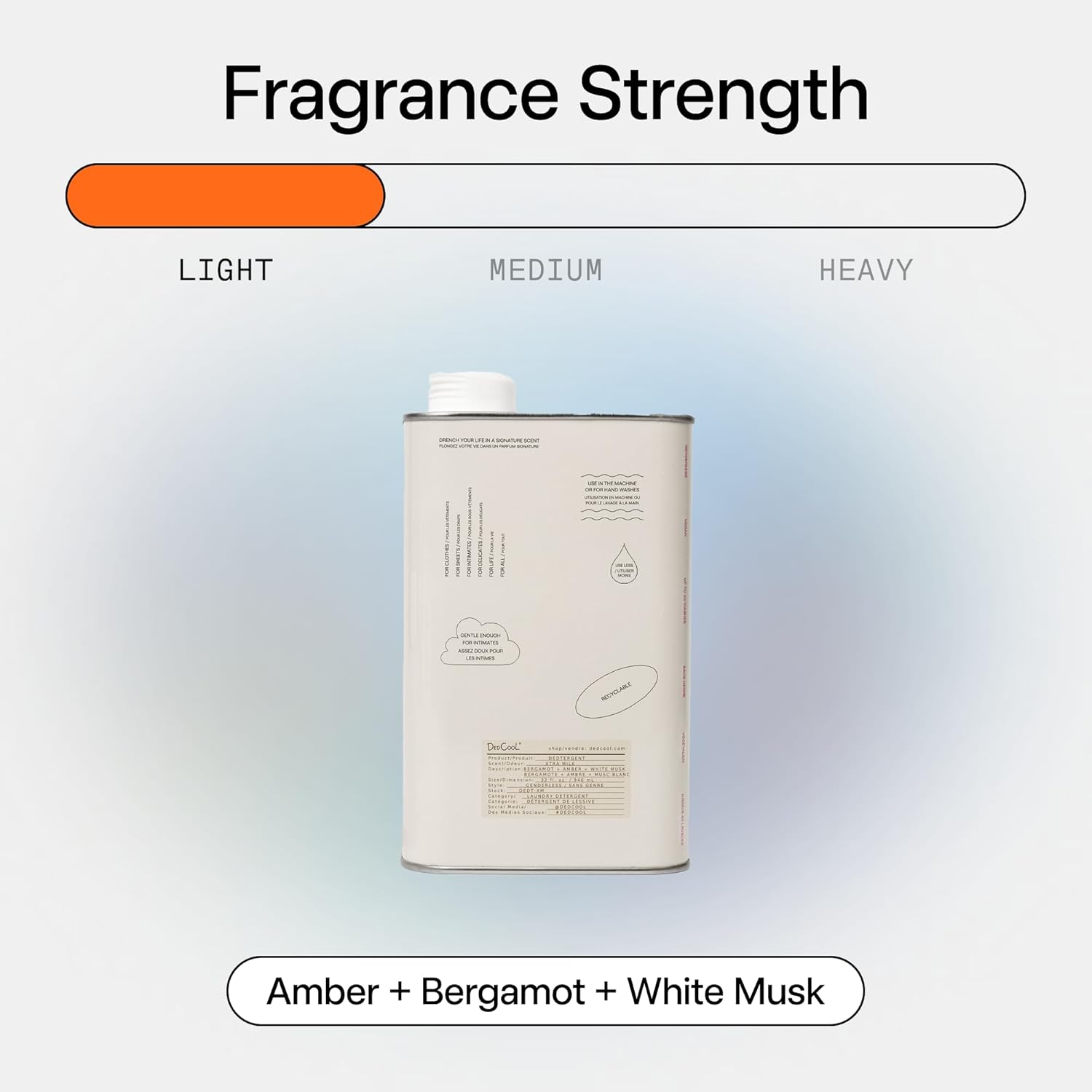 - Luxurious Fragrance & Effective Cleaning: Elevate your laundry routine with DedCool's Scented Liquid Laundry Dedtergent. This best-smelling laundry detergent offers a sophisticated blend of bergamot, white musk, and amber, making it the best-scented laundry detergent for a fragrant laundry experience.