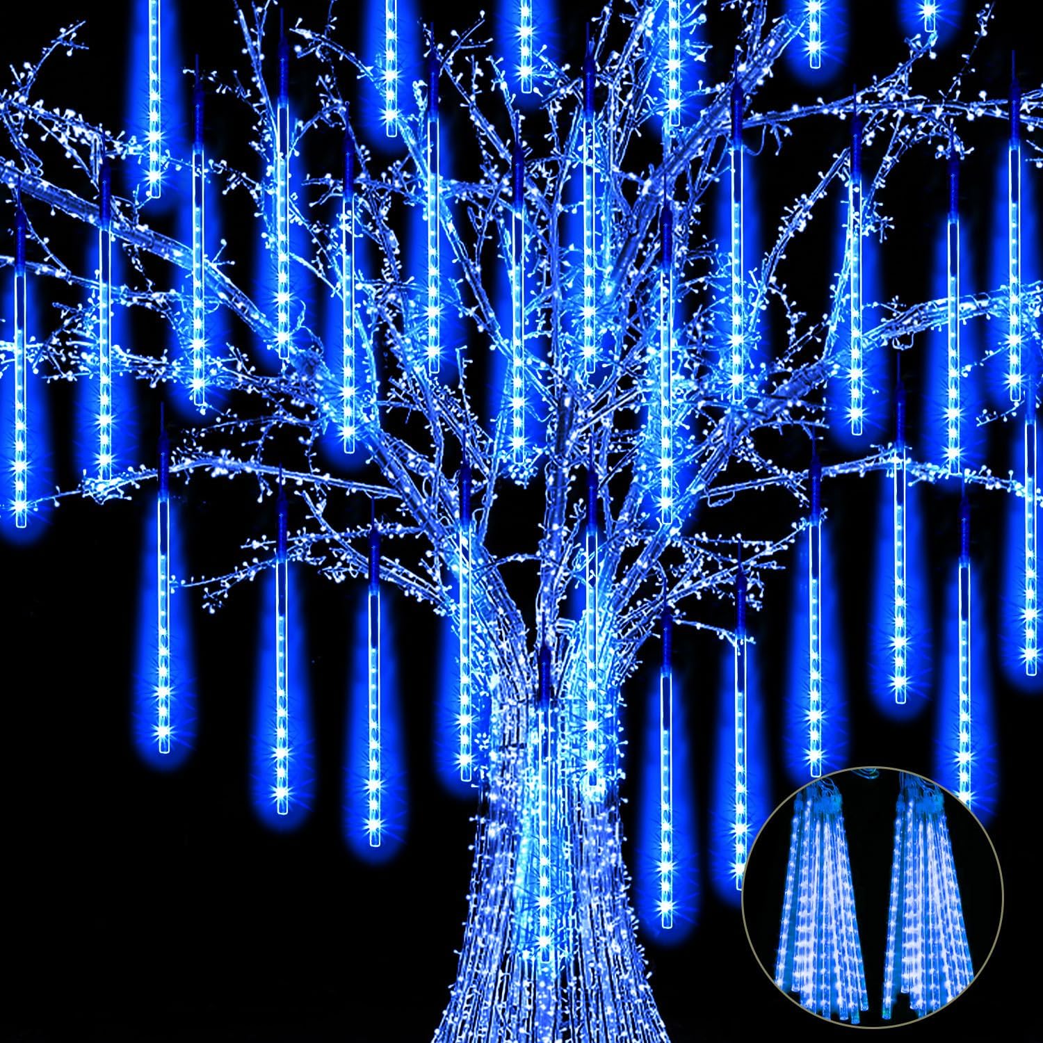 【2 Pack】 Christmas Lights Meteor Shower Rain Lights 12inch, Totally 20 Tube 480 LEDs Icicle Lights Outdoor Raindrop Lights for Xmas Halloween Wedding Party Tree Holiday Decoration, Blue