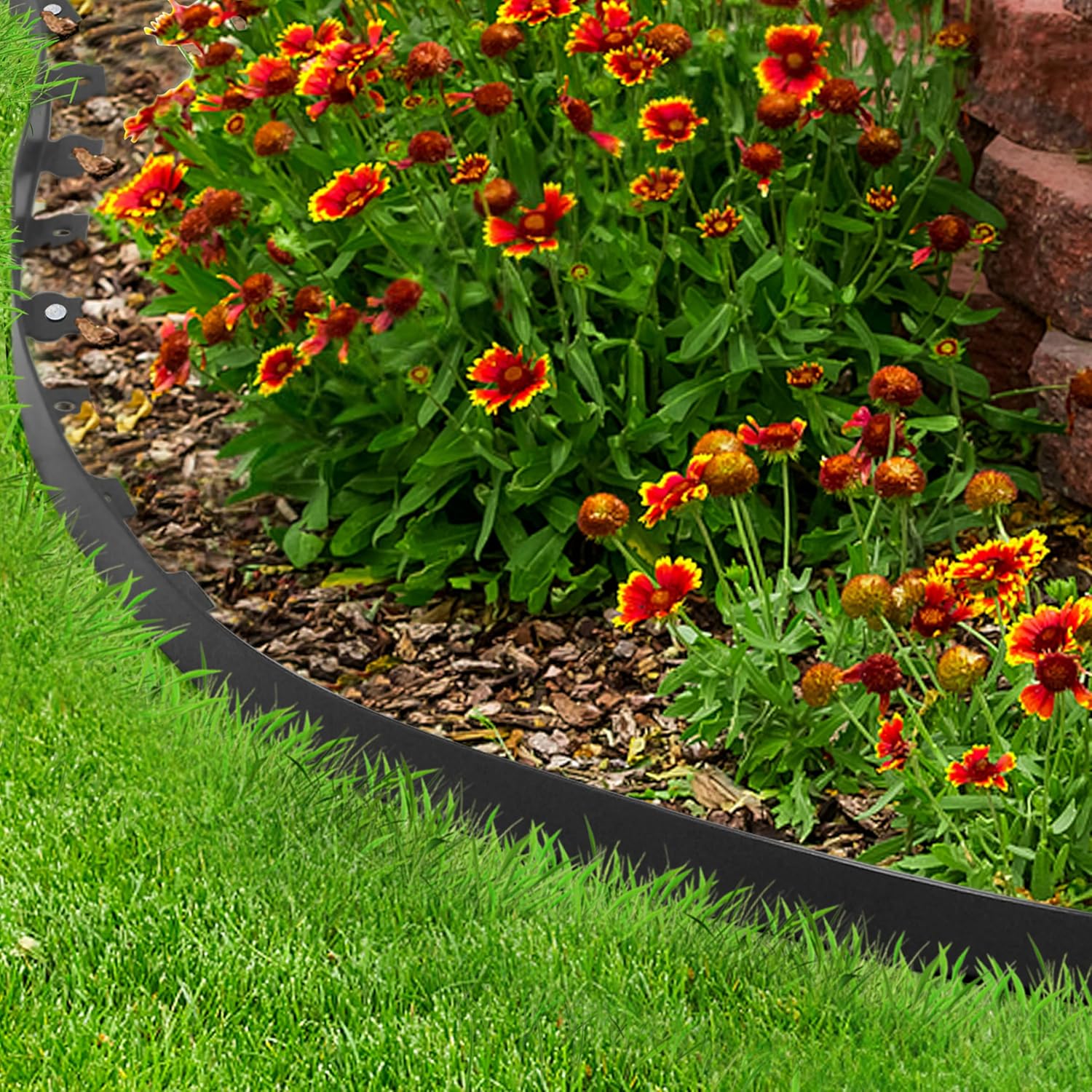 - Easy to Install - The garden border is easy to install, no need to dig or bury, just stake in ground every 2-3 holes to secure edging to the ground and keep the contours of your design.