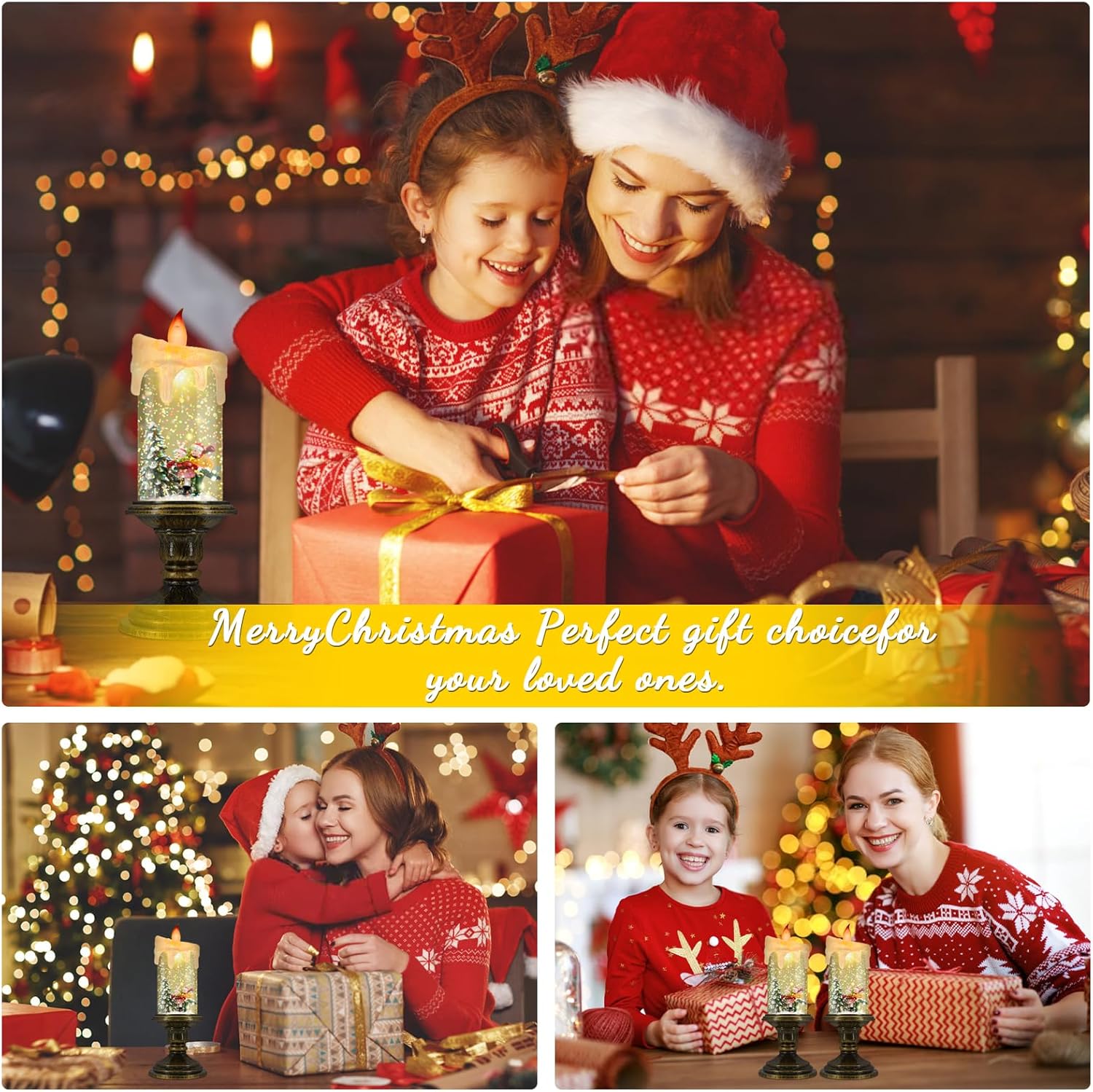 - Premium Quality: Our Christmas flameless LED candles measure 4 inches in diameter and 10 inches in height, crafted from high-quality resin and plastic with water and glitter. Featuring a vintage Christmas design, these candles offer realistic lighting and an elegant, stunning appearance.