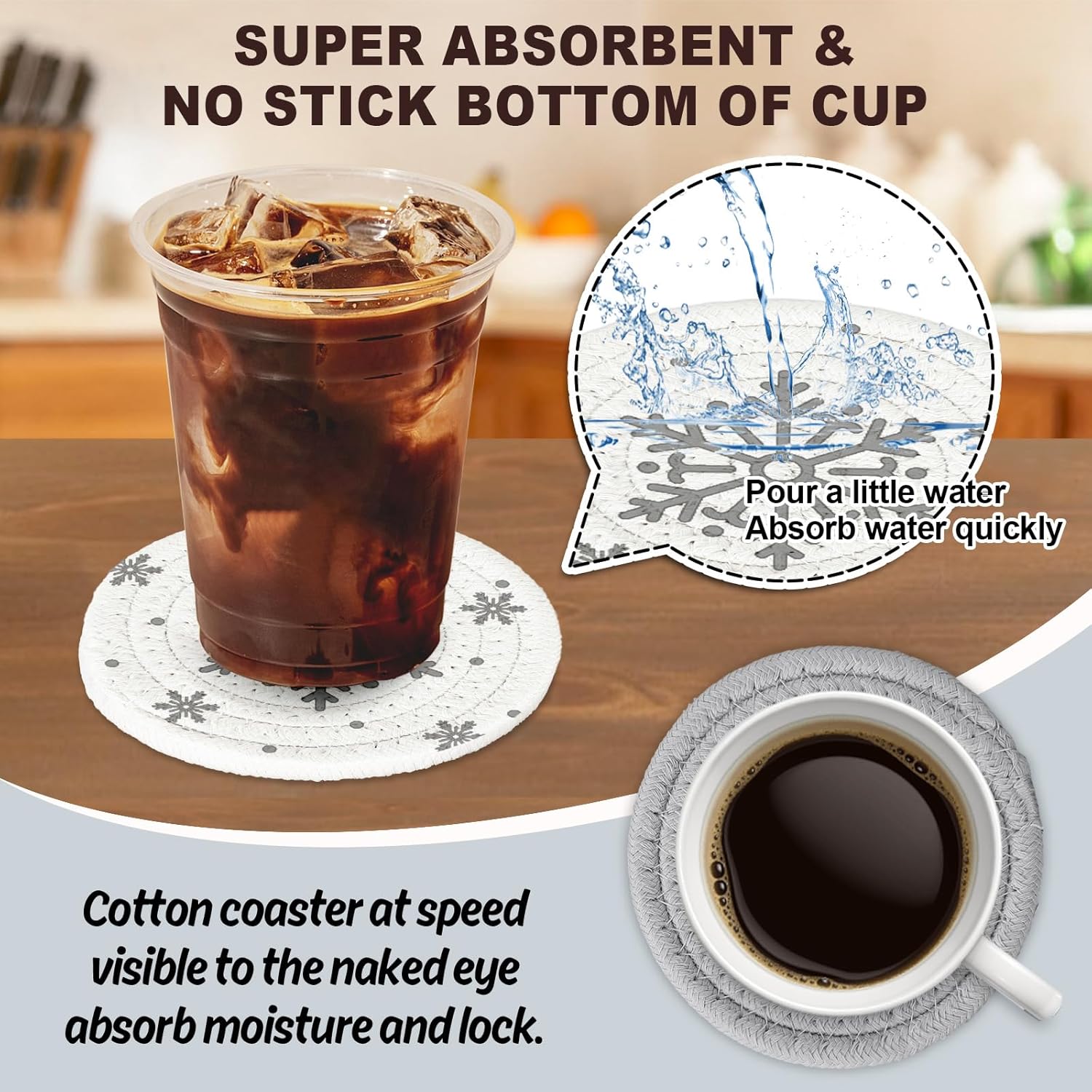 - The Package Includes - 4Pcs winter theme handmade braided cotton coasters in two different designs, 2Pcs for gray and 2Pcs for snowflakes, enough to meet your various needs.