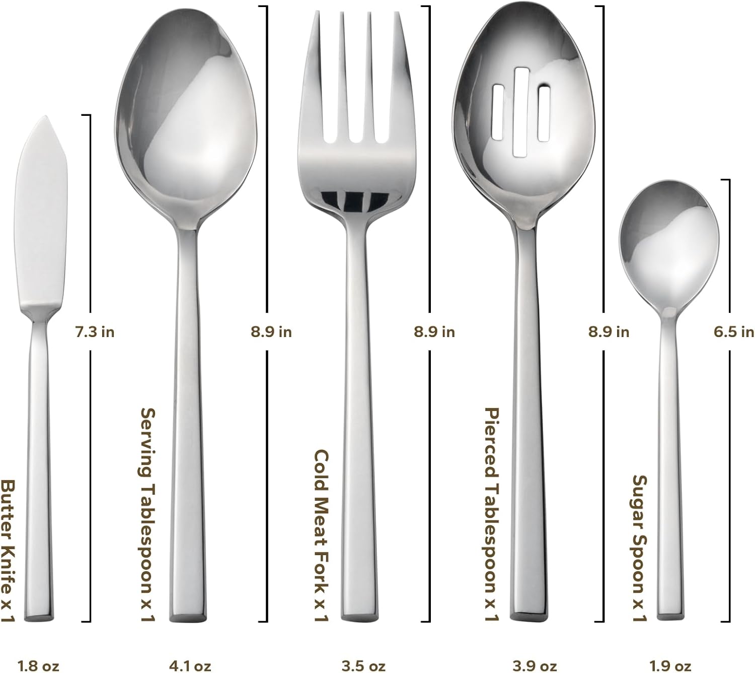 - Included Components : 12 dinner knives, 12 dinner forks, 12 dinner spoons, 12 salad forks, 12 teaspoons, utensil-serving set 12 dinner knives, 12 dinner forks, 12 dinner spoons, 12 salad forks, 12 teaspoons, utensil-serving set