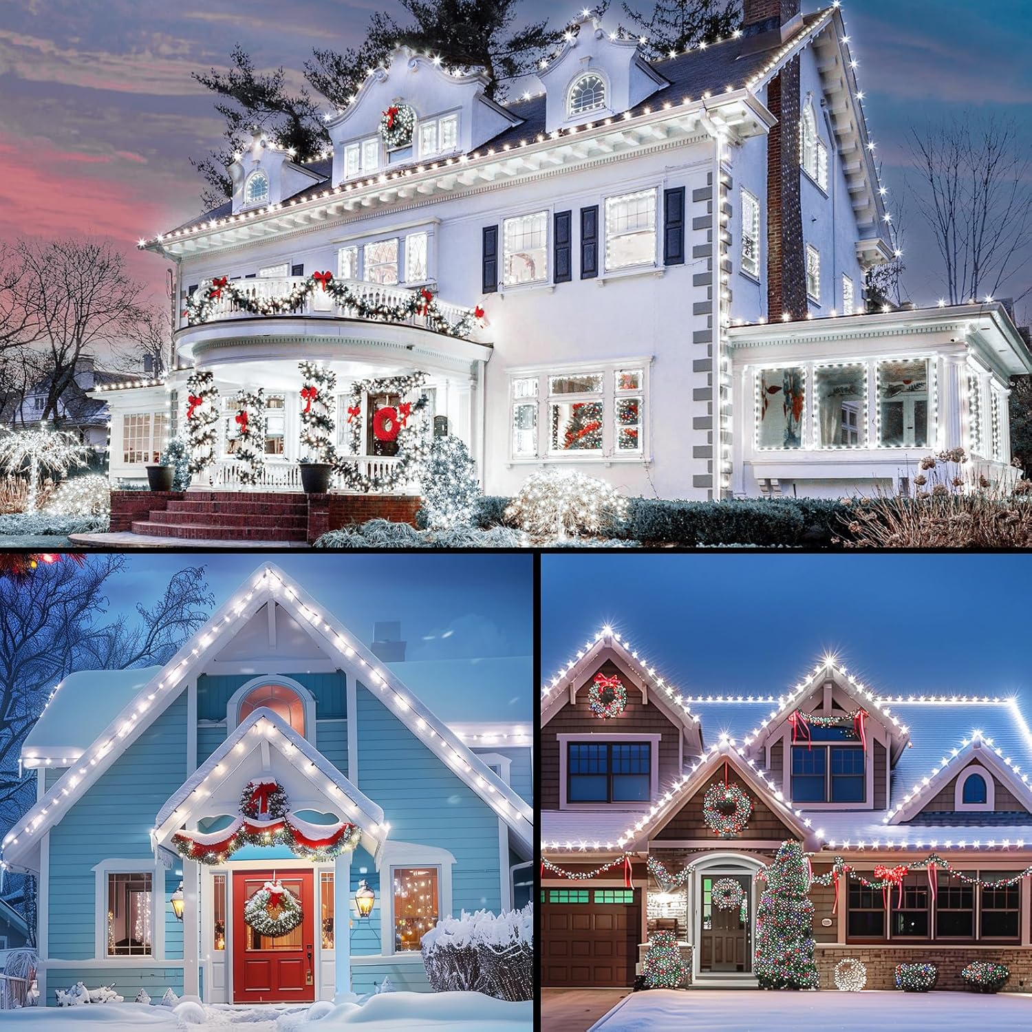 - End-to-End Connectable: Each Christmas light has an end-to-end connector, and you can connect up to 100 sets of these strings end-to-end, freely connecting according to your needs. Hang these fairy lights from your roof, porch, or fence, or wrap them around trees to create a romantic holiday atmosphere and enjoy a happy holiday season with your family