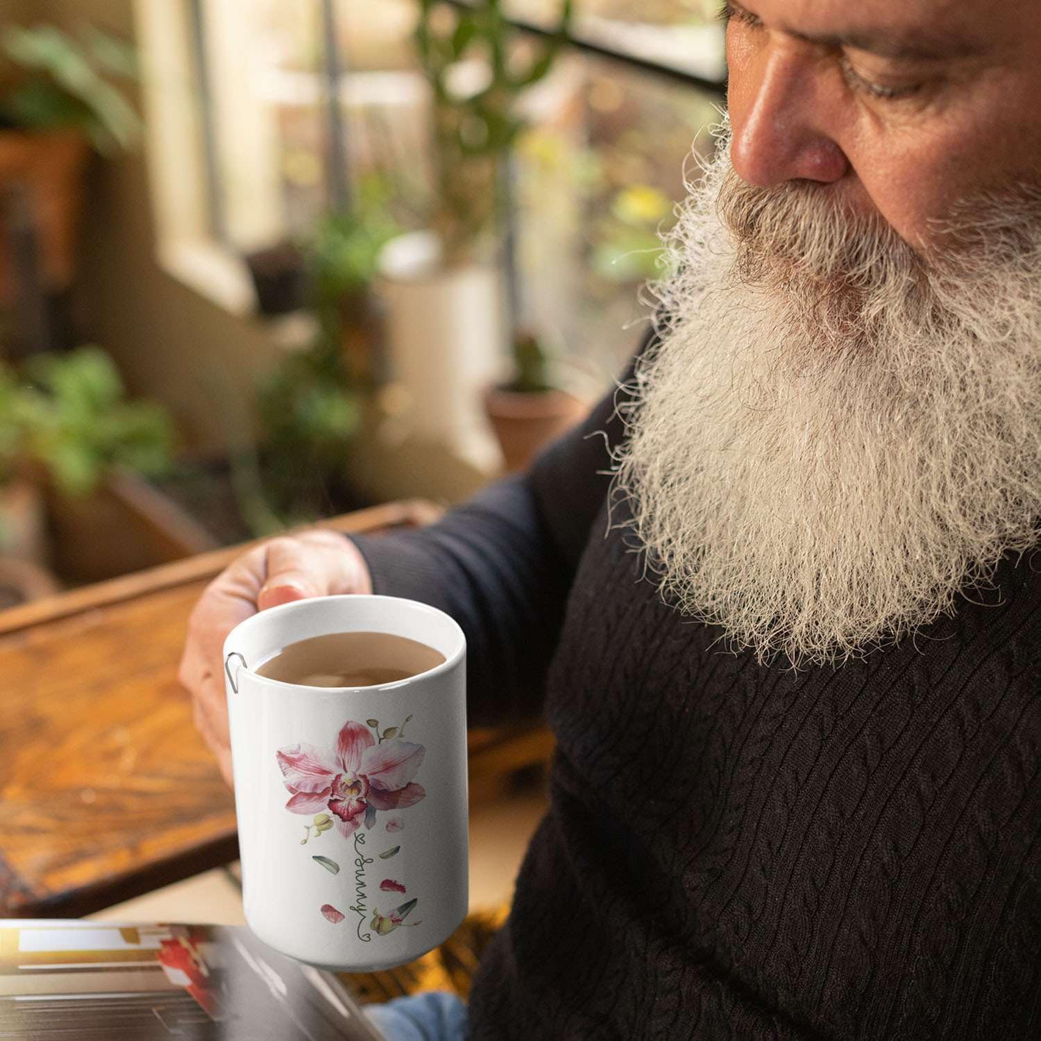 Novelty Coffee Cup With Orchid Design, Personalized Name Flower Accent Mug, Custom Orchid Flower Ceramic Cup 11oz 15oz, Customized Flower Lover Mug, Gift For Family Member
