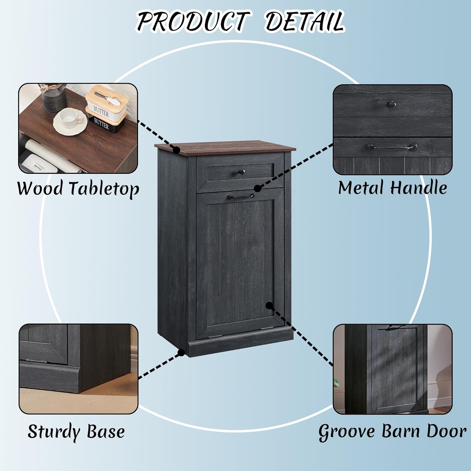 - 【Farmhouse Furniture】This wooden trash can cabinet features a simple streamlined design that combines farmhouse, beauty and practicality, easily blending into a space with a rustic farmhouse atmosphere.