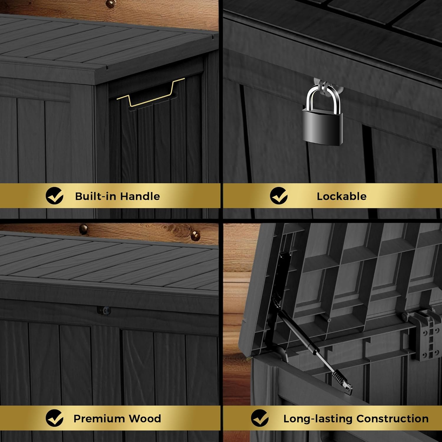 - Wide Range of Use: With a capacity of 150 gallons, this storage box can also be used as a patio seat, storage bench or footstool, whether it's family party supplies, camping equipment, gardening tools.