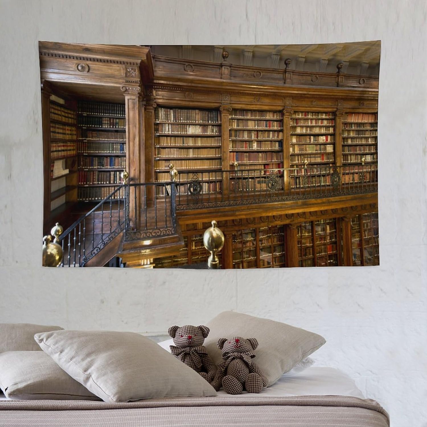 Kurtect Library Tapestry,Vintage Medieval Antique Bookshelf Bookcase Pattern Print Tapestries for Party Beach Picnic Blankets Tablecloths Living Room Wall Deocr, 40x60 in