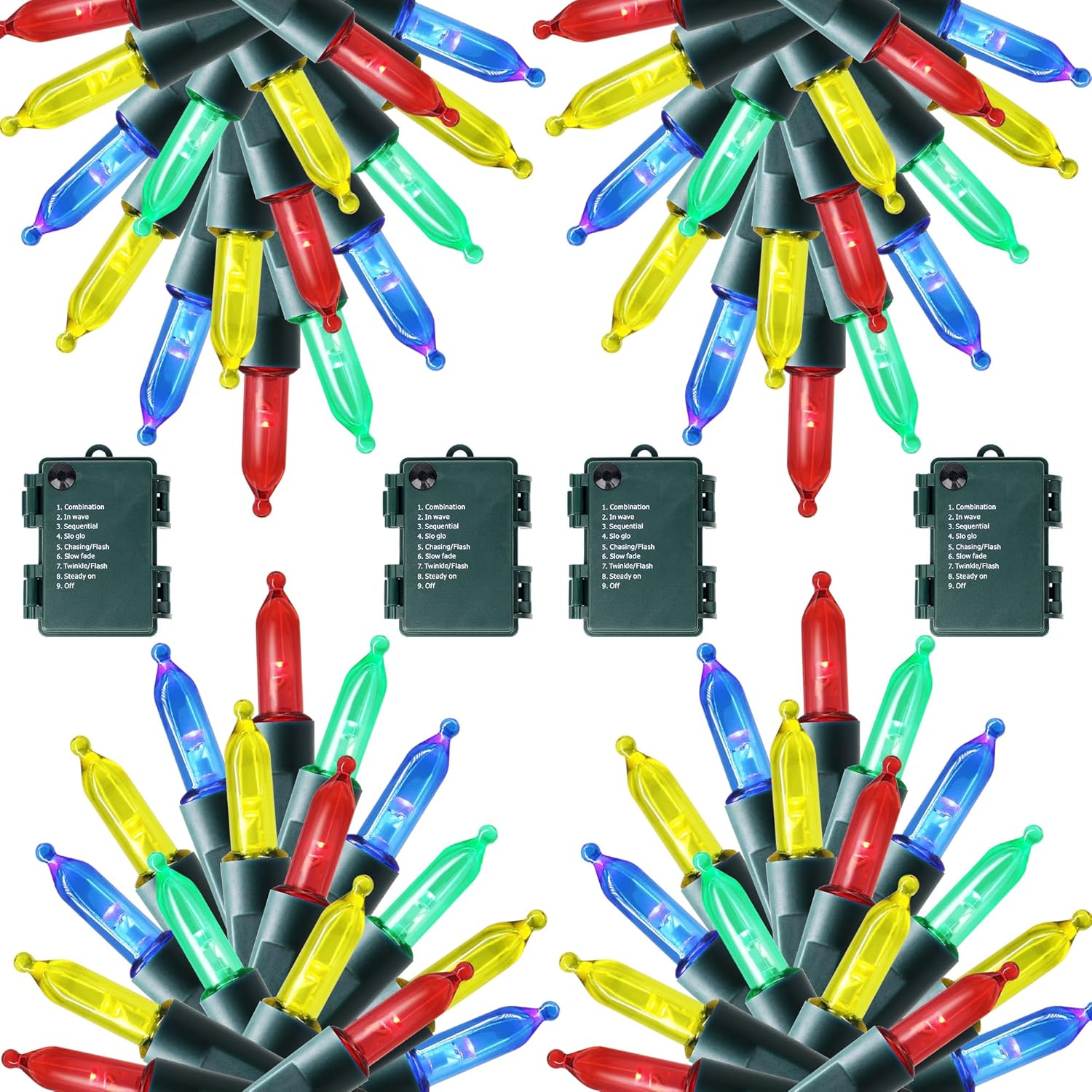 Joliyoou 4 Packs Total 200 LEDs 64ft Multicolored Christmas String Lights, Battery Operated Christmas Mini String Lights with 8 Lighting Modes, Indoor Outdoor LED Xmas Fairy String Lights with Timer