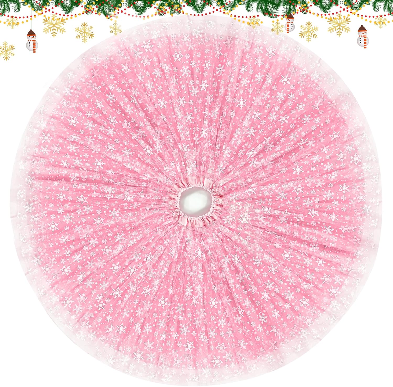 Christmas Wedding Tree Skirt, 4 Layer 45 in Snowflake Tulle Tree Decoration for Party Indoor, Fluffy Tree Cover Mat Ornament for Holiday, Pink
