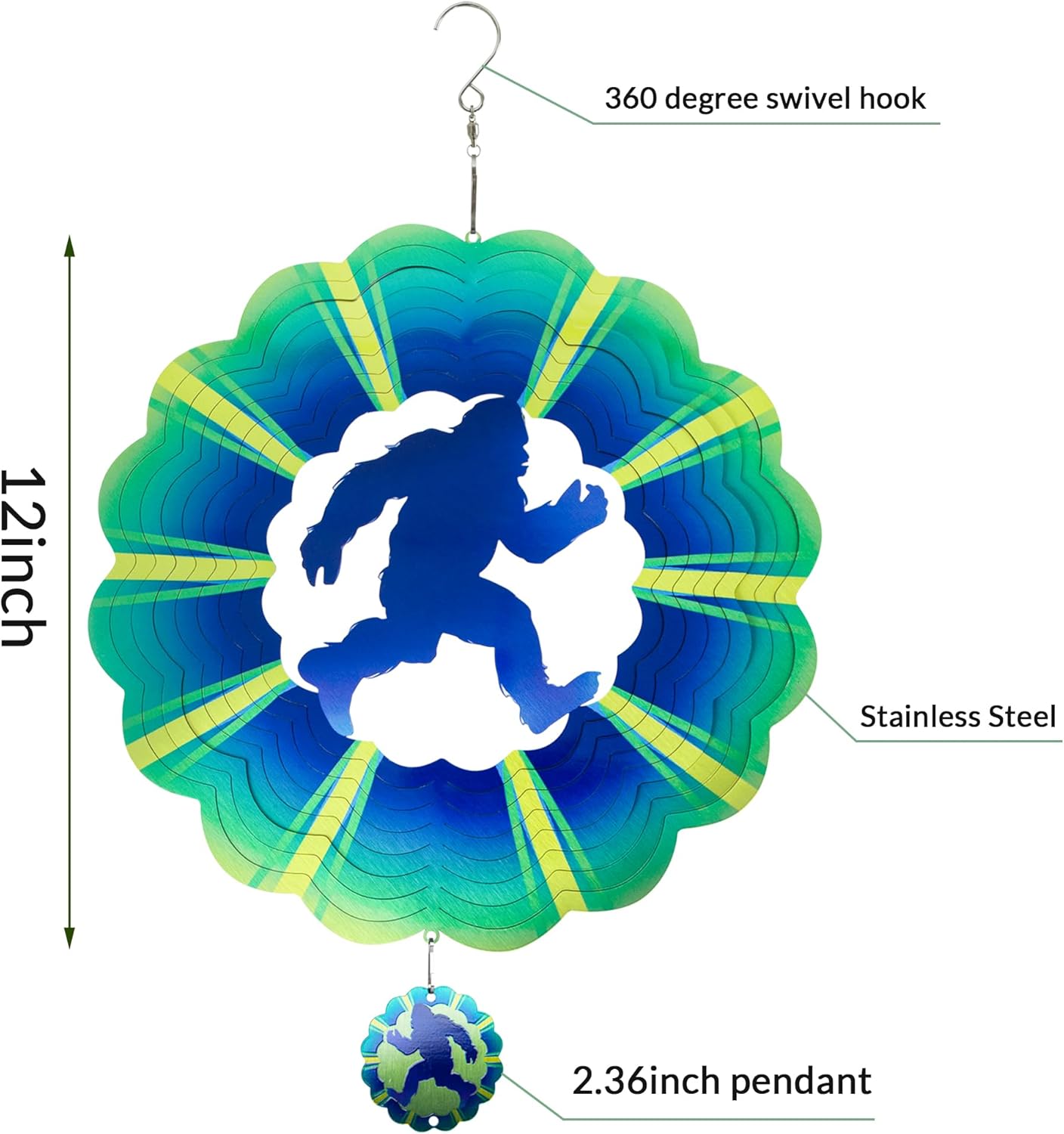 Bigfoot Gifts Sasquatch Yard Decor, for Dad Husband,12 inch Bigfoot 3D Hanging Wind Spinners Outdoor