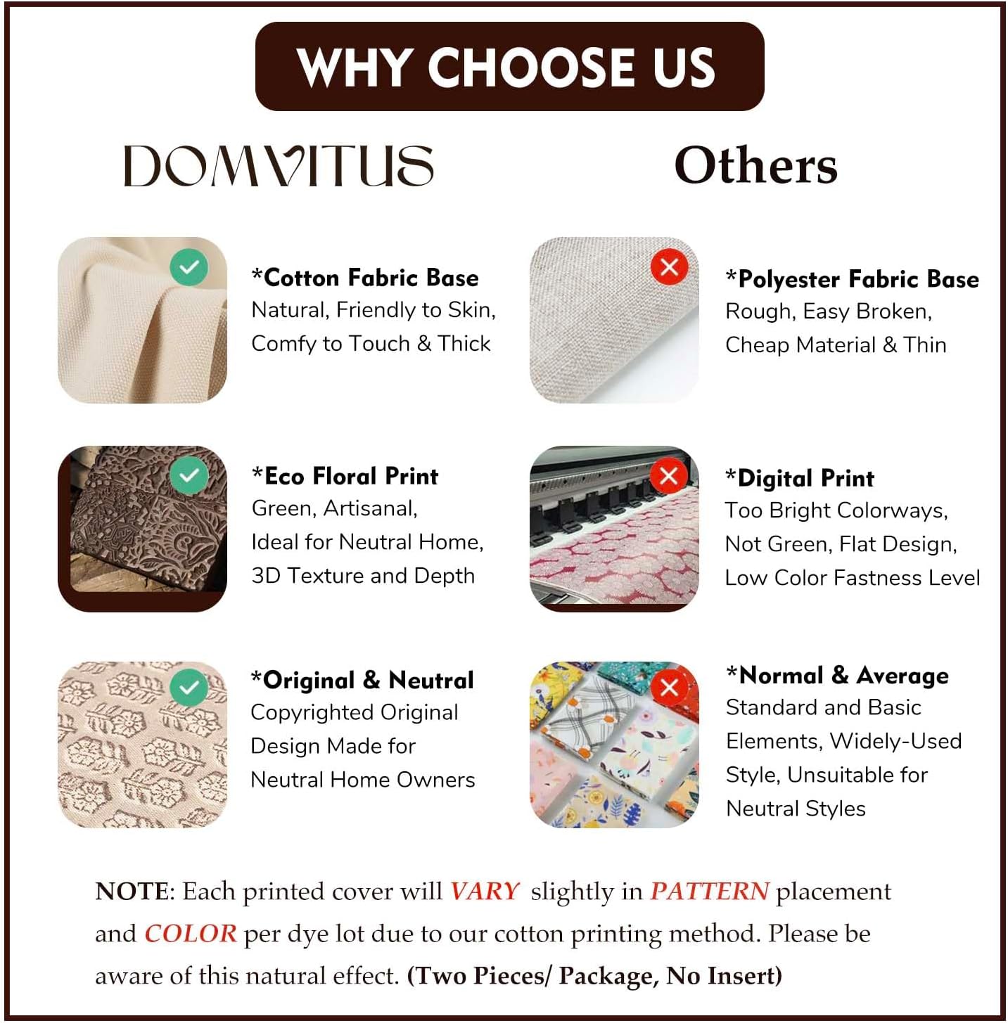 DOMVITUS Floral Pillow Covers Set of 2, 24x24 Pillow Covers, Floral Print Neutral Accent Decorative Pillow Covers for Living Room, Bed, Dark Brown