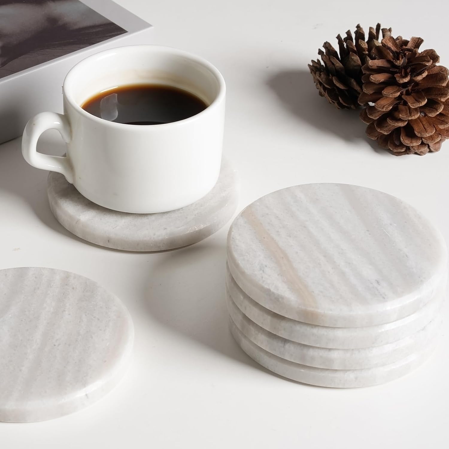 - Real Solid Marble Cup Coaster ---- These handmade marble coasters are crafted from natural solid marble, which endows our coasters with unique texture and appearance that can elevate your desktop beauty, add a sense of high quality and luxury to your home environment