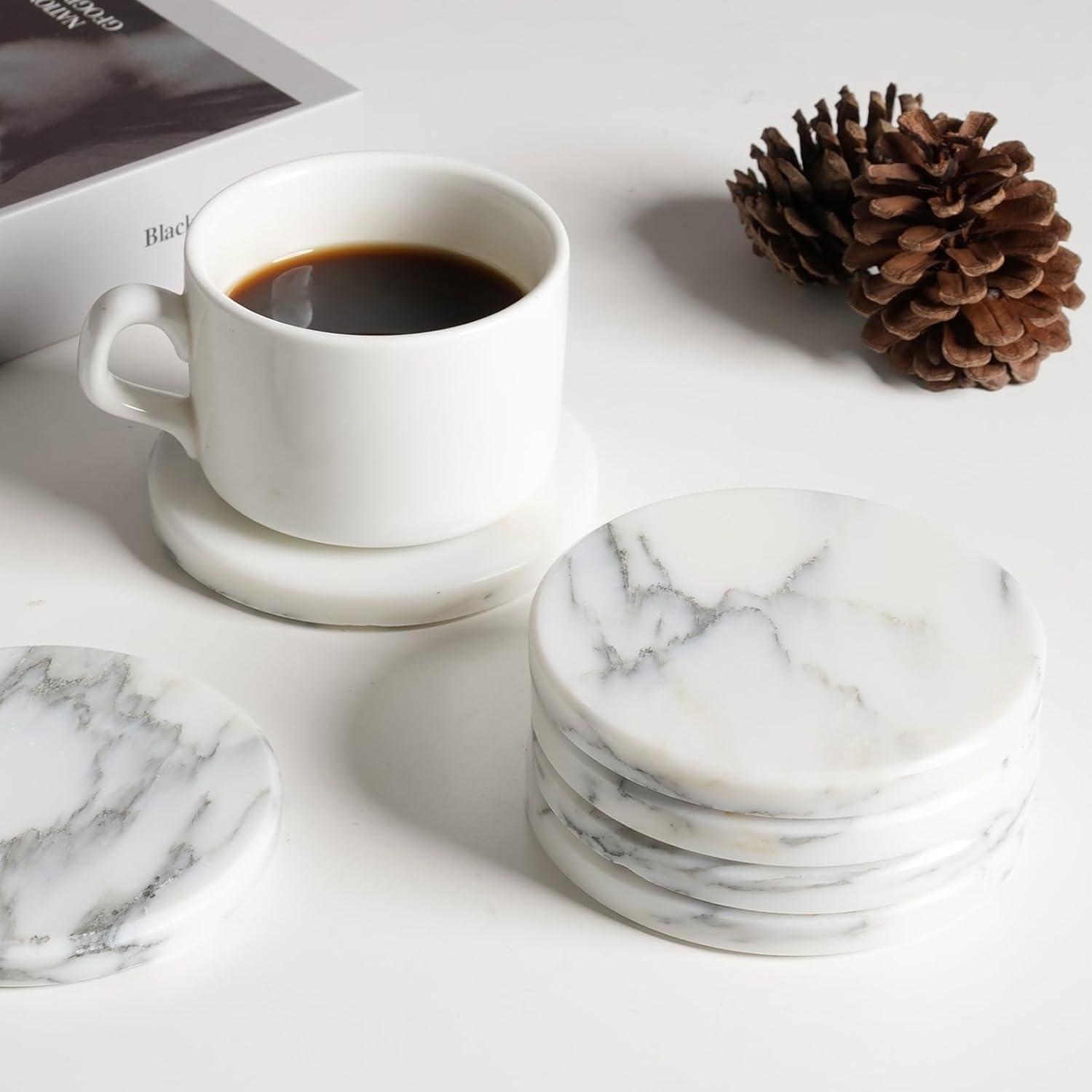 - Real Solid Marble Cup Coaster ---- These handmade marble coasters are crafted from natural solid marble, which endows our coasters with unique texture and appearance that can elevate your desktop beauty, add a sense of high quality and luxury to your home environment
