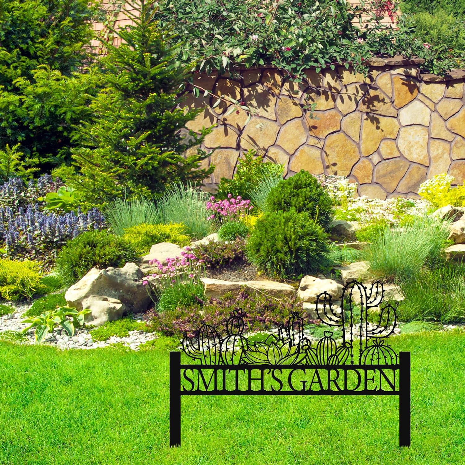 Personalized Cactus Metal Garden Sign, Large Garden Decoration Metal Sign with Stakes, Custom Gardener Family Name Sign, Cactus Decor for Outdoor, Patio Decorative, Yard Art, New Home Gift