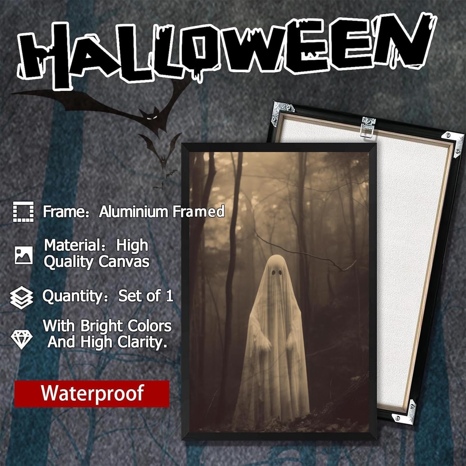 Ghost Forest Spooky Print Poster The Gothic Room Decor Creepy Picture Posters Dark Academia Aesthetic Family Prints Canvas Wall Art Home Apartment Decorations 16X24inch Aluminum Framed