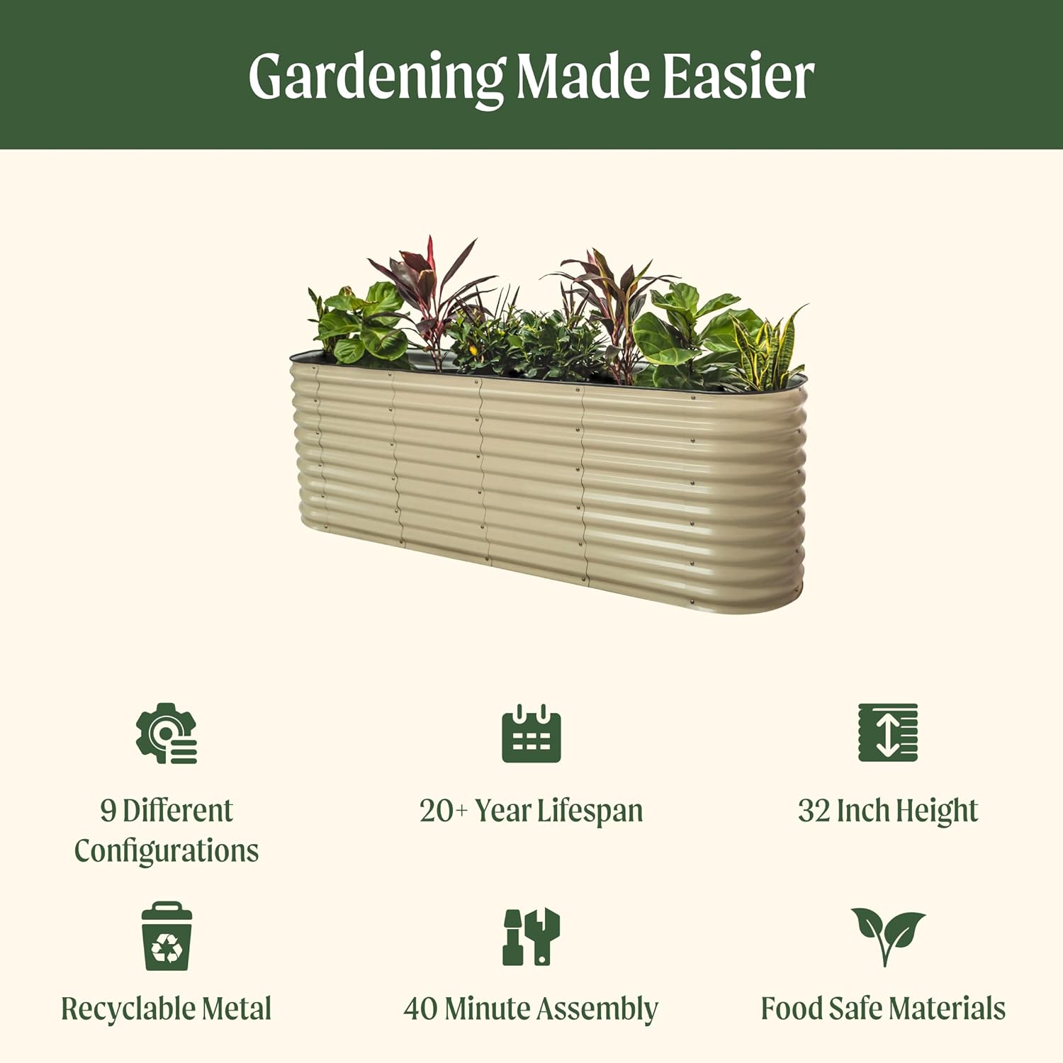 Vego garden 32" Extra Tall Raised Garden Bed Kits, 9 in 1 Modular Raised Planter Box for Vegetables Flowers Fruits Oval Metal Raised Garden Bed, Sunlit Oak