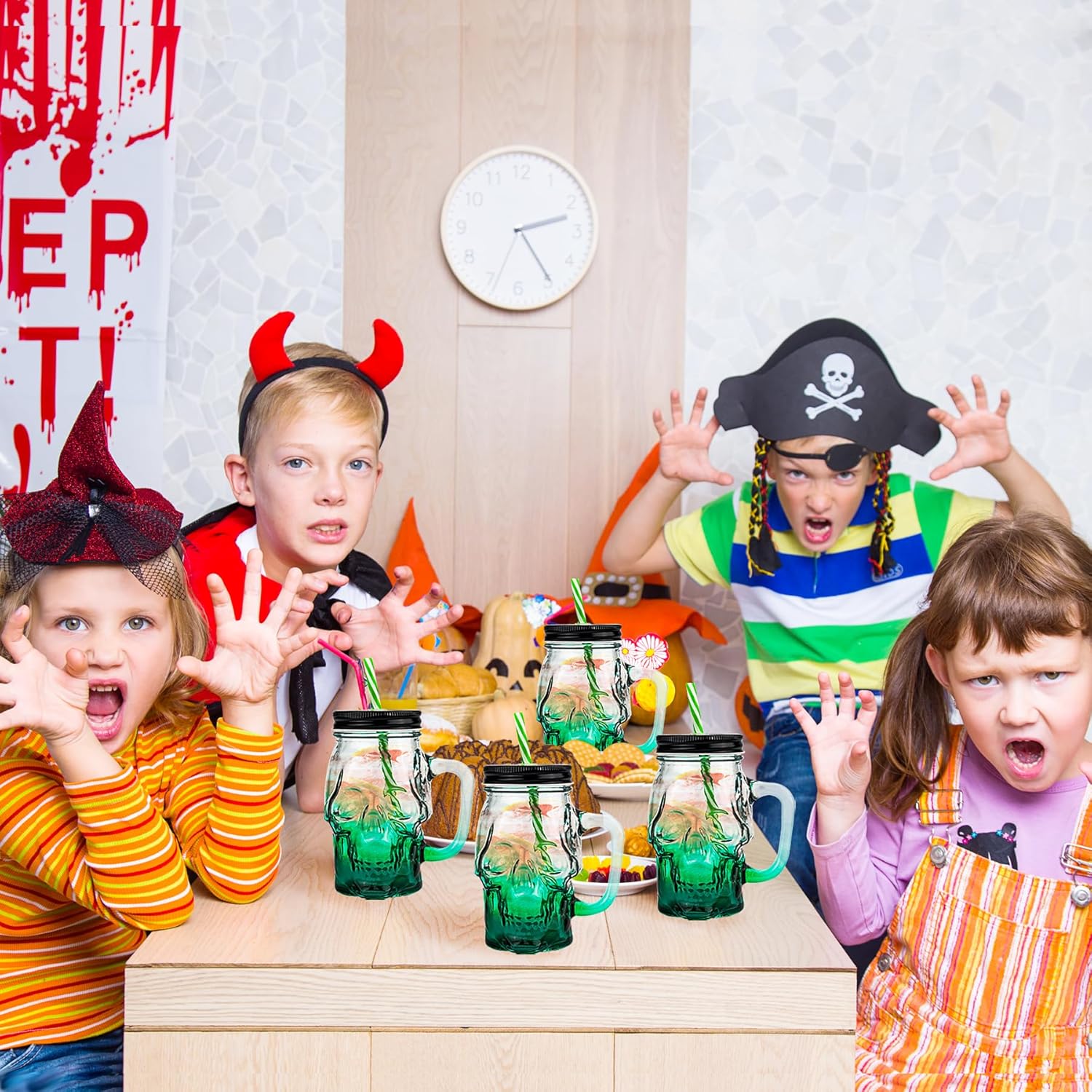 - Eye-Catching Decor: Not only are these Halloween cups practical, but they also serve as eye-catching decorations. The unique skull design will instantly enhance the ambiance of any Halloween-themed event. Add a touch of spooky elegance to your party or bar with these striking skull mason jars.