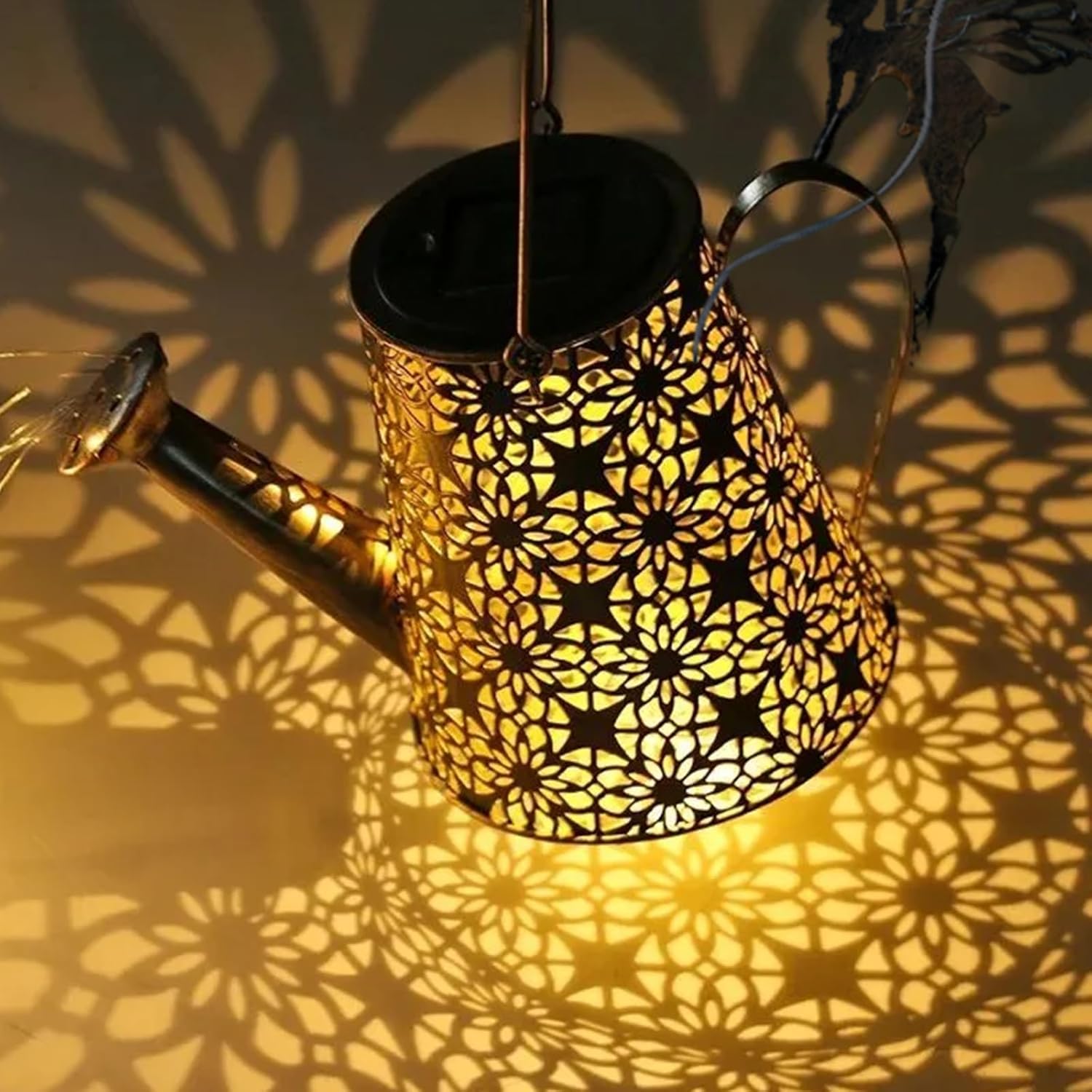- Creative Garden LED Light: This solar watering can light features a unique hollow watering can design with flexible LED string lights that can be bent to your liking. Perfect for hanging on porches, pergolas, or placing on tables and windowsills, it adds a cozy glow to your yard and patio. When lit, the twinkling lights mimic water sprinkling from the can, creating a magical garden ambiance!