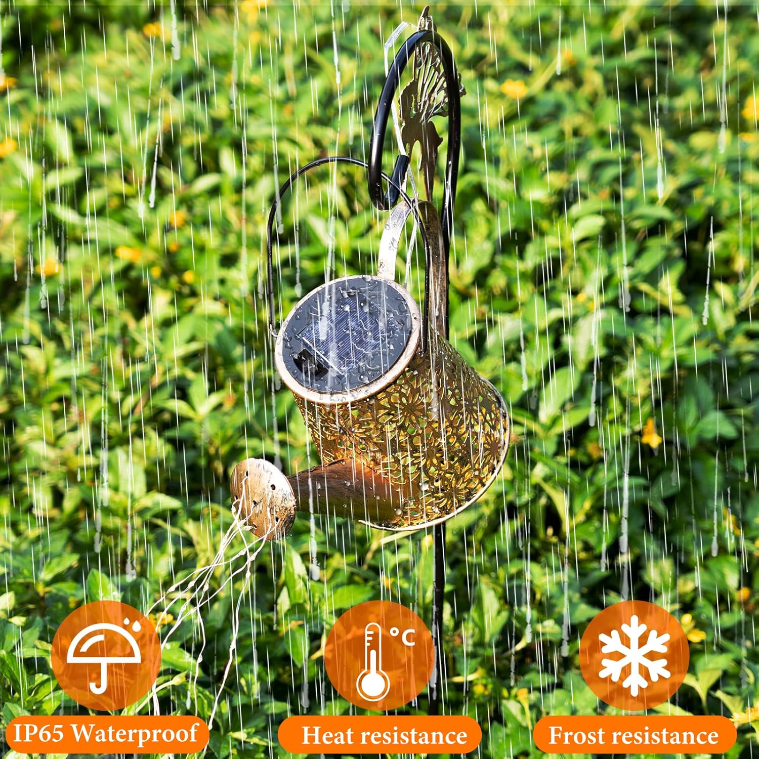 - IP65 Waterproof: Solar watering can light crafted with premium rust-resistant metal and IP65 waterproof rating. These solar lights can withstand rain, snow and extreme temperatures, making them a great choice for outdoor garden decorations.