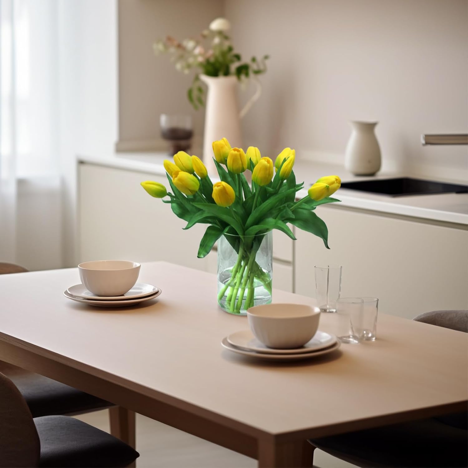 - [Low Maintenance]: Compared to real flowers, Fake Tulips require minimal upkeep. faux tulips won't wilt, offering a long-lasting decorative option. There's no need for watering, pruning, or sunlight, making them perfect for busy individuals or environments where real plants struggle to thrive.