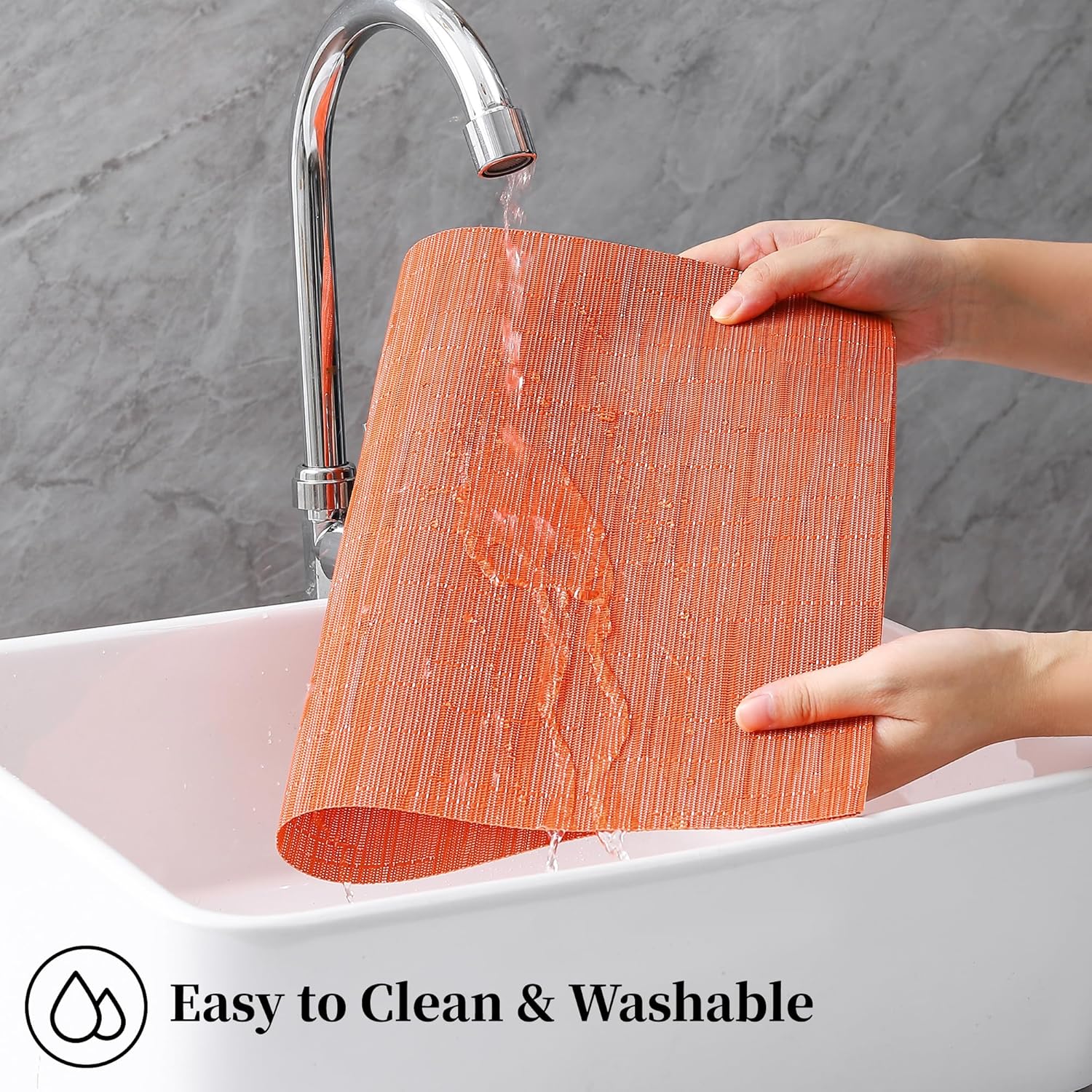 - Elegant and Practical Design: With a luxurious vinyl woven texture, precision cutting, and heat-trimmed edges, our double-sided placemats offer a sophisticated and practical solution. They provide a non-slip surface, resist fading, and are easy to clean, elevating your dining experience