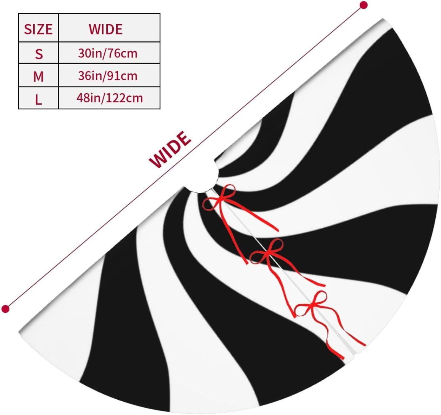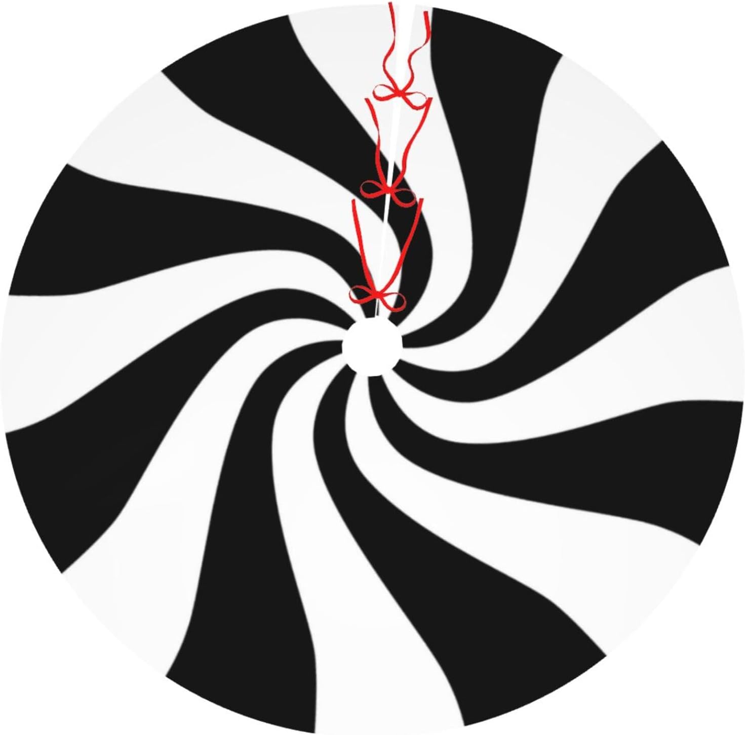 48" Black and White Peppermint Candy Christmas Tree Skirt, Tree Mat Base Cover for Xmas Festive Holiday Party Decoration Ornaments