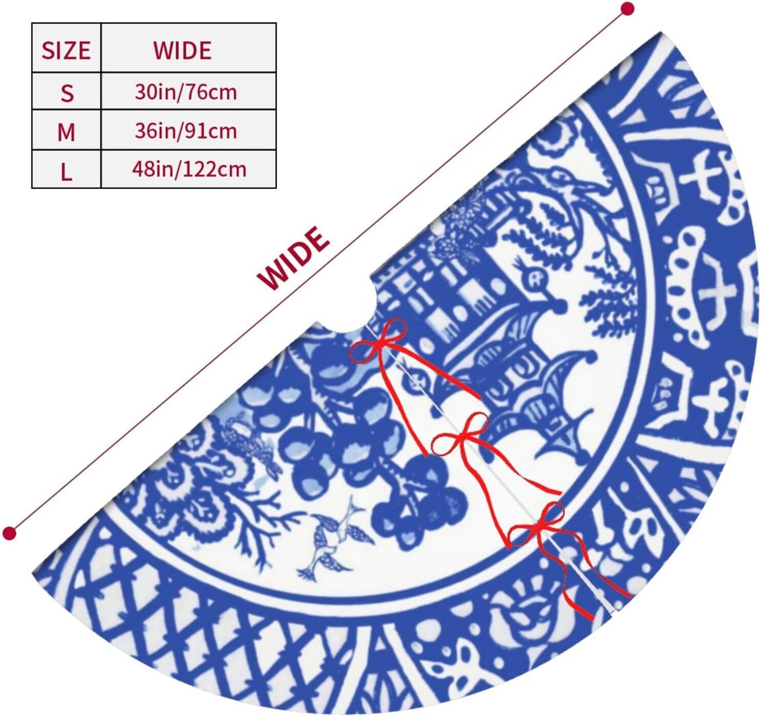 36" Large Christmas Tree Skirt, Blue Willow Oriental Rabbit Whimsical Blue & White Pattern Tree Mat Base Cover for Xmas Festive Holiday Party Decoration Ornaments
