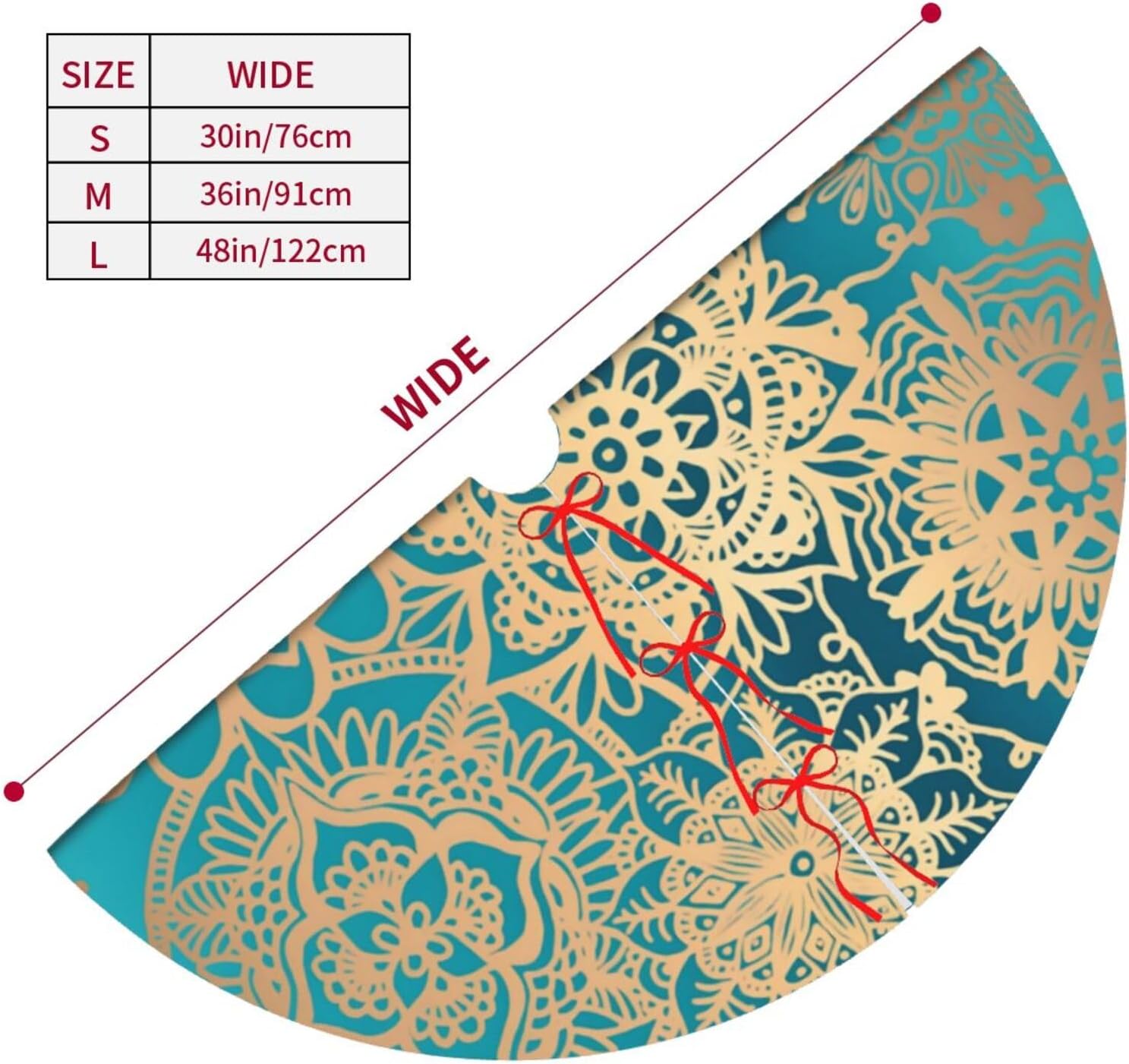 36" Large Christmas Tree Skirt, Elegant Teal Green Mandala Pattern Pattern Tree Mat Base Cover for Xmas Festive Holiday Party Decoration Ornaments