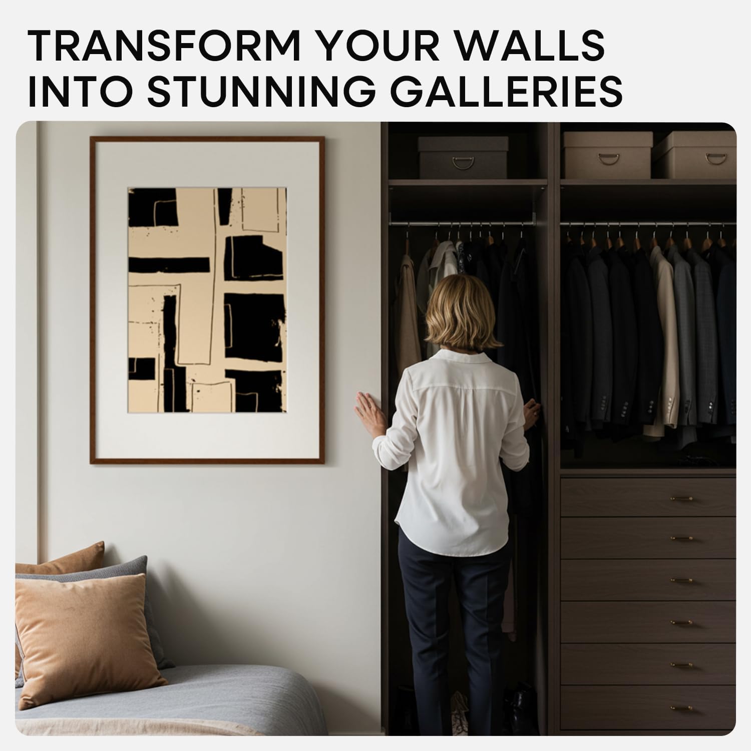 Homeforia A1 Poster Frame Brown, High End Dark Oak 23.4 x 33.1 Wooden Picture Frames Matted to 16.5 by 23.4 Photo, A1 Walnut Wood Frame with Mat A2, 23.4x33.1 Frame, Tempered Glass, Wall Kit, Set of 1