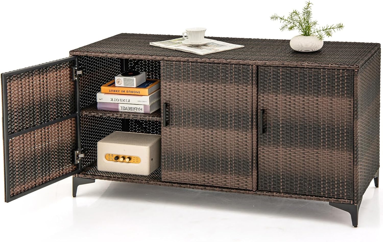 - 3-Door Customized Storage: Equipped with 3 removable shelves, this rattan storage container can be customized to fit your different belongings. Moreover, 3 doors allow you to access your stored items with ease.