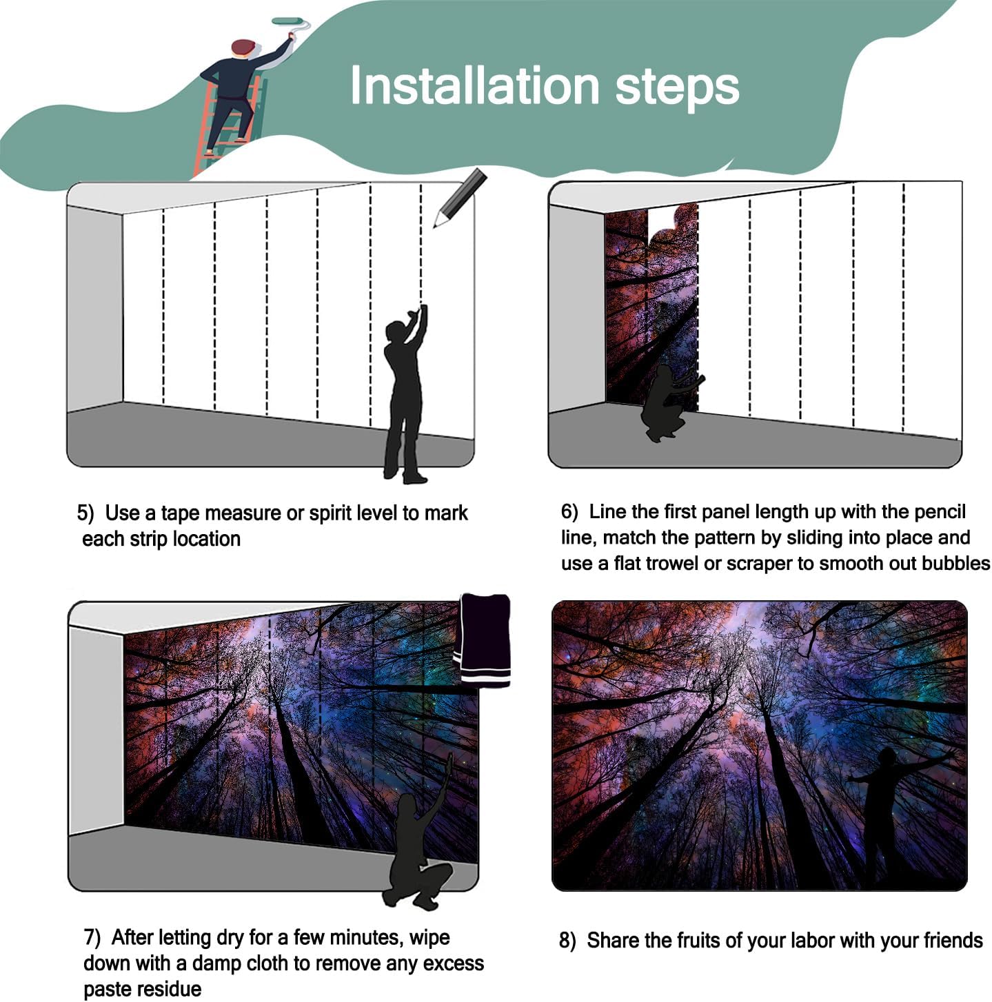 - Matters Need Attention:Our wall mural is not self-adhesive or peel and stick.You need to buy their own tools and heavy wallpaper adhesive, otherwise it can not be used
