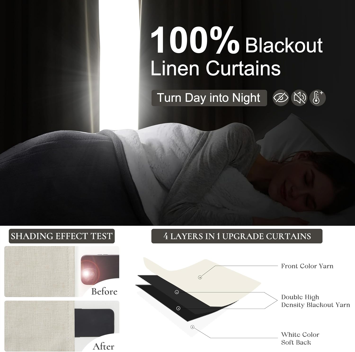 Cream Blackout Curtains & Drapes 96 Inches Long 2 Panels Set for Sliding Glass Doors, Pinch Pleated Thick Linen Blend Windows Curtain with Back Tab for Bedroom Cold Weather Thermal 40"W x 96"L