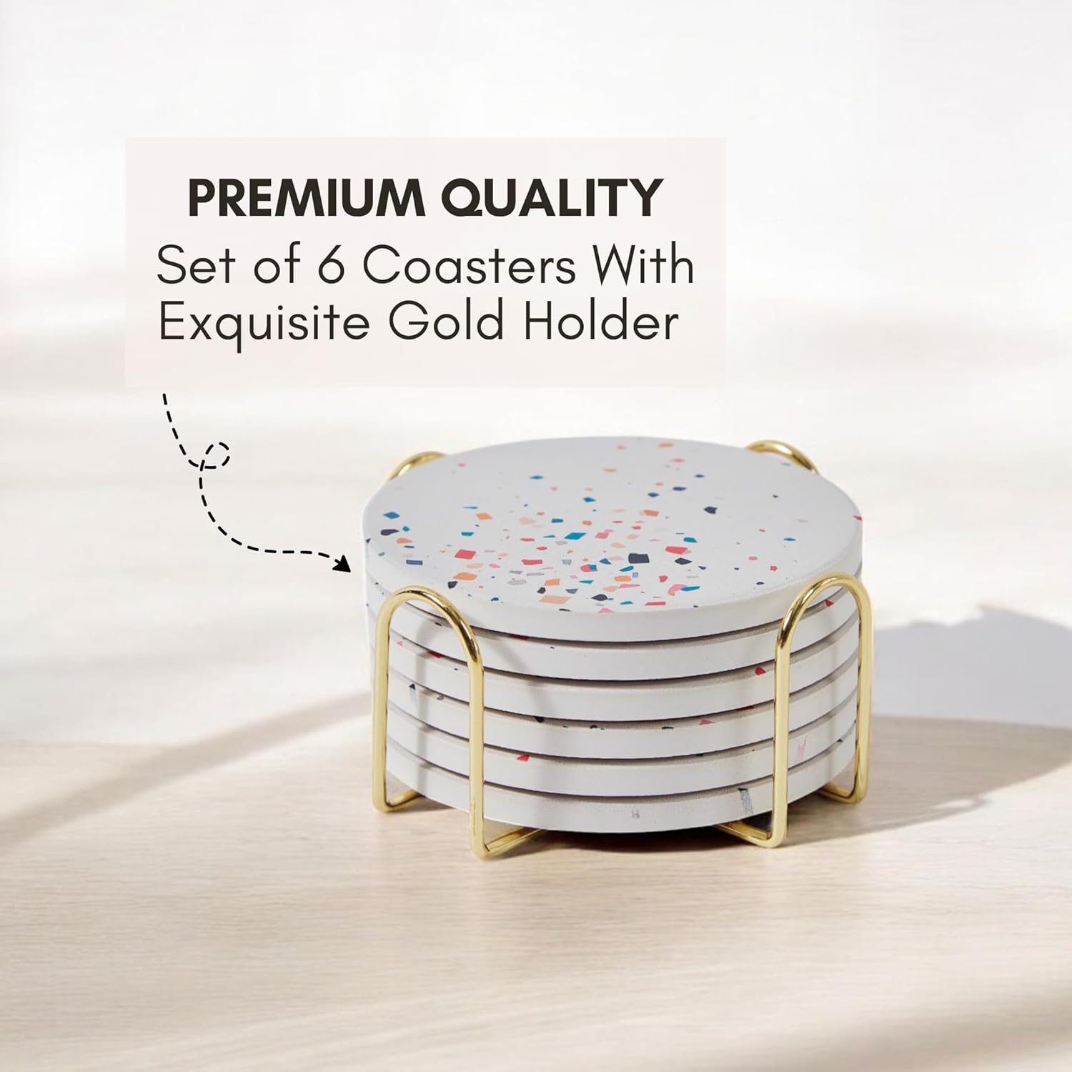 Terrazzo Drink Absorbent Coasters with Holder Set of 6, Ceramic Coaster for Drinks, Coffee Table Decor, Water Absorbing Stone Coaster for Drinks (Color Burst)