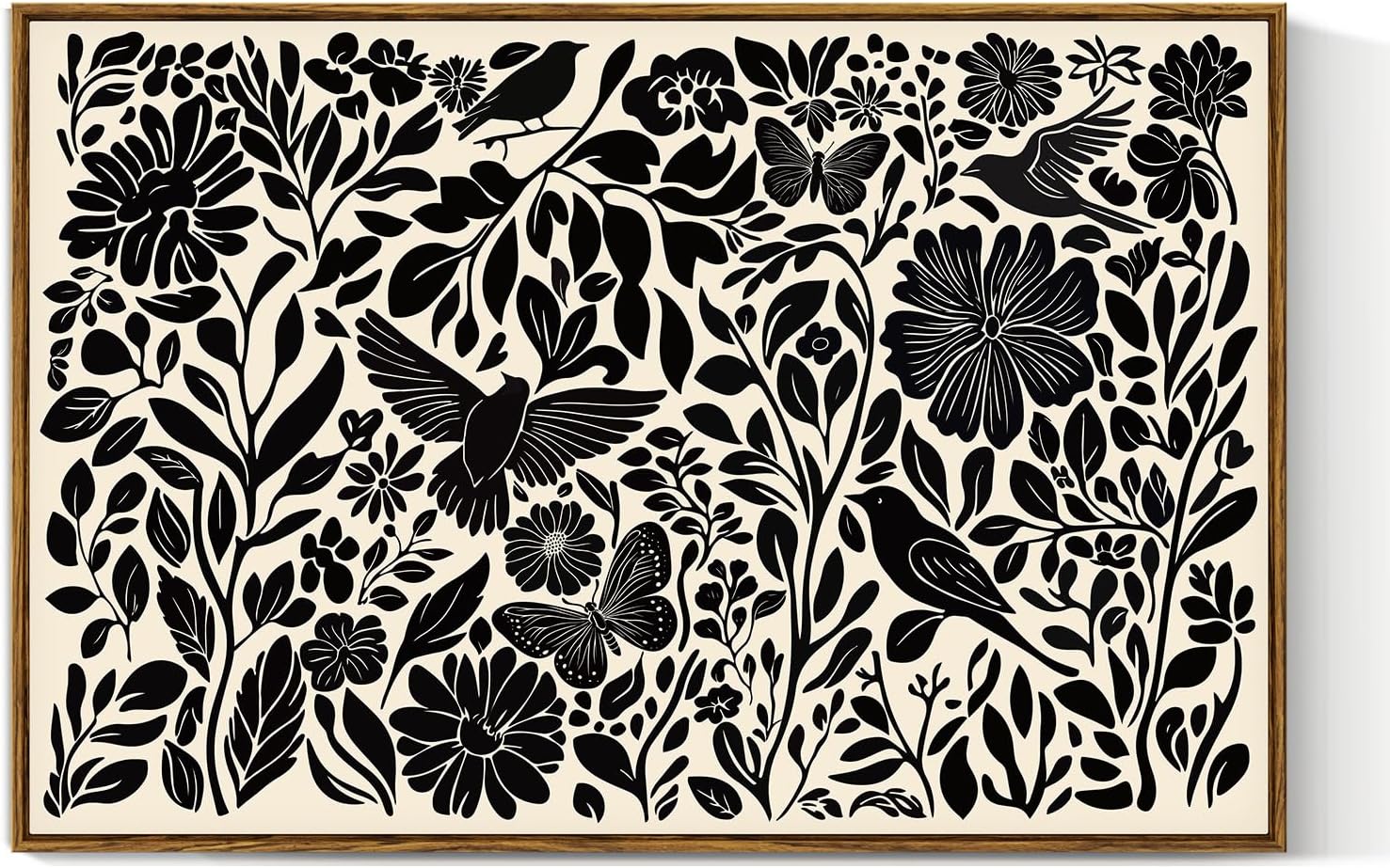 VIYYIEA Framed Canvas Wall Art, Black and White Large Wall Art for Living Room, Print Paintings, Boho Home Office Decor, Bedroom Wall Decor -【Flowers & Birds】-(24"x36")