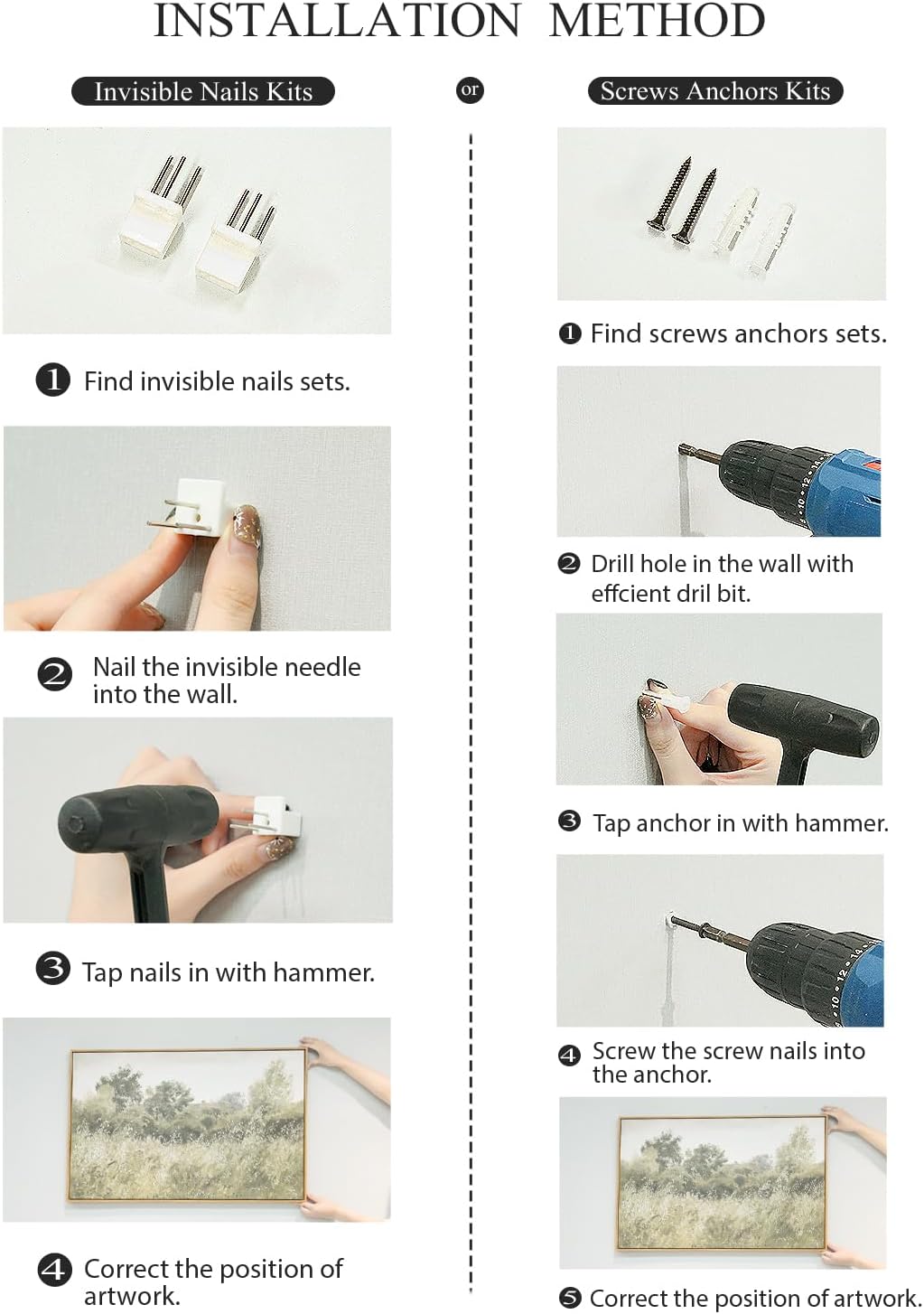 - Framed Wall Art【CUSTOMER SERVICE】High quality after-sales service! When you receiving the item, please check the accessories, there's one bag of nails and hook. If there is any damage or loss, please let us know. We will reply within 24 hours.