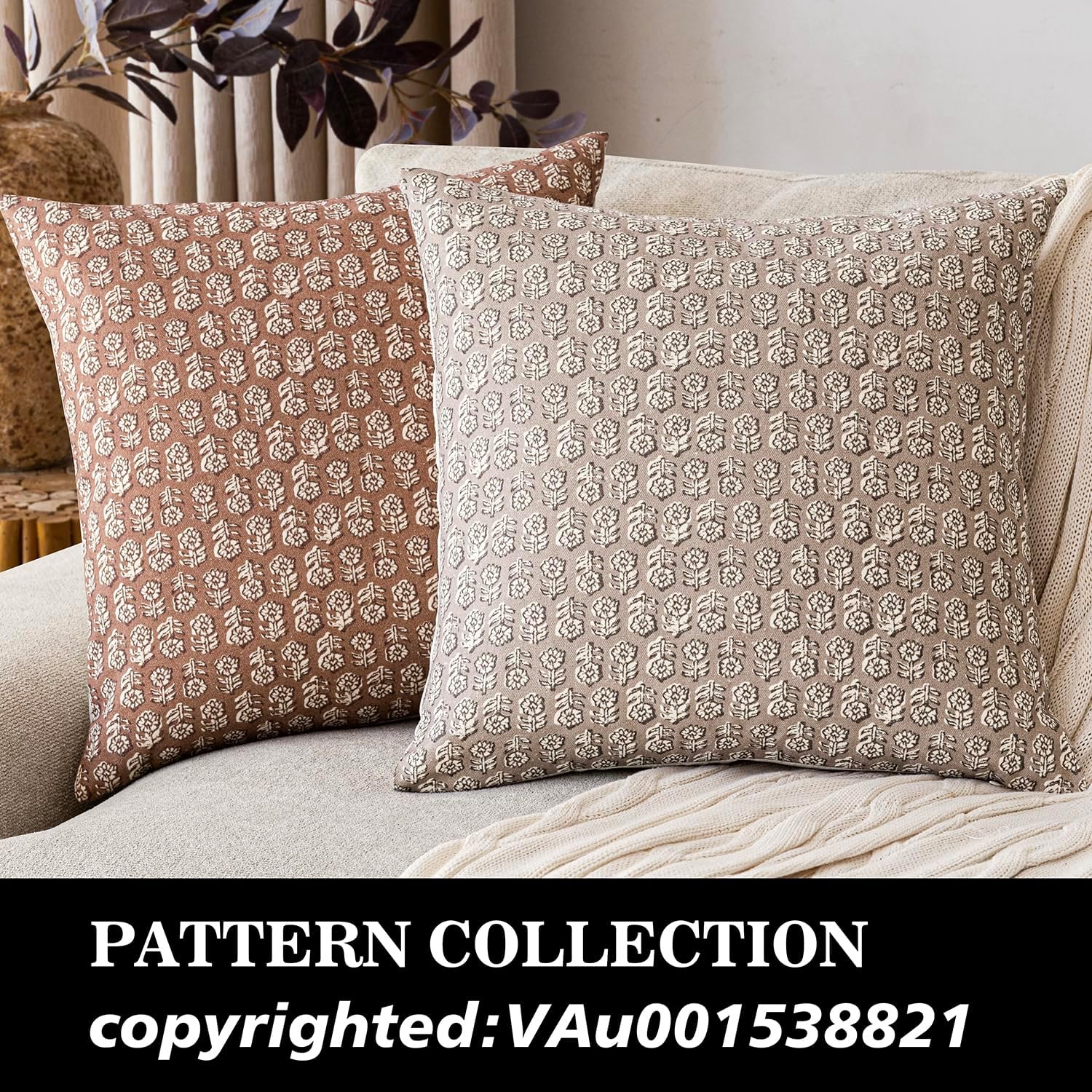 Foindtower Set of 2 Decorative Neutral Floral Print Throw Pillow Covers Vintage Farmhouse Cushion Covers Boho Home Decor for Sofa Chair Couch Bedroom Living Room Outdoor,18×18 Inch,Light Orange Brown