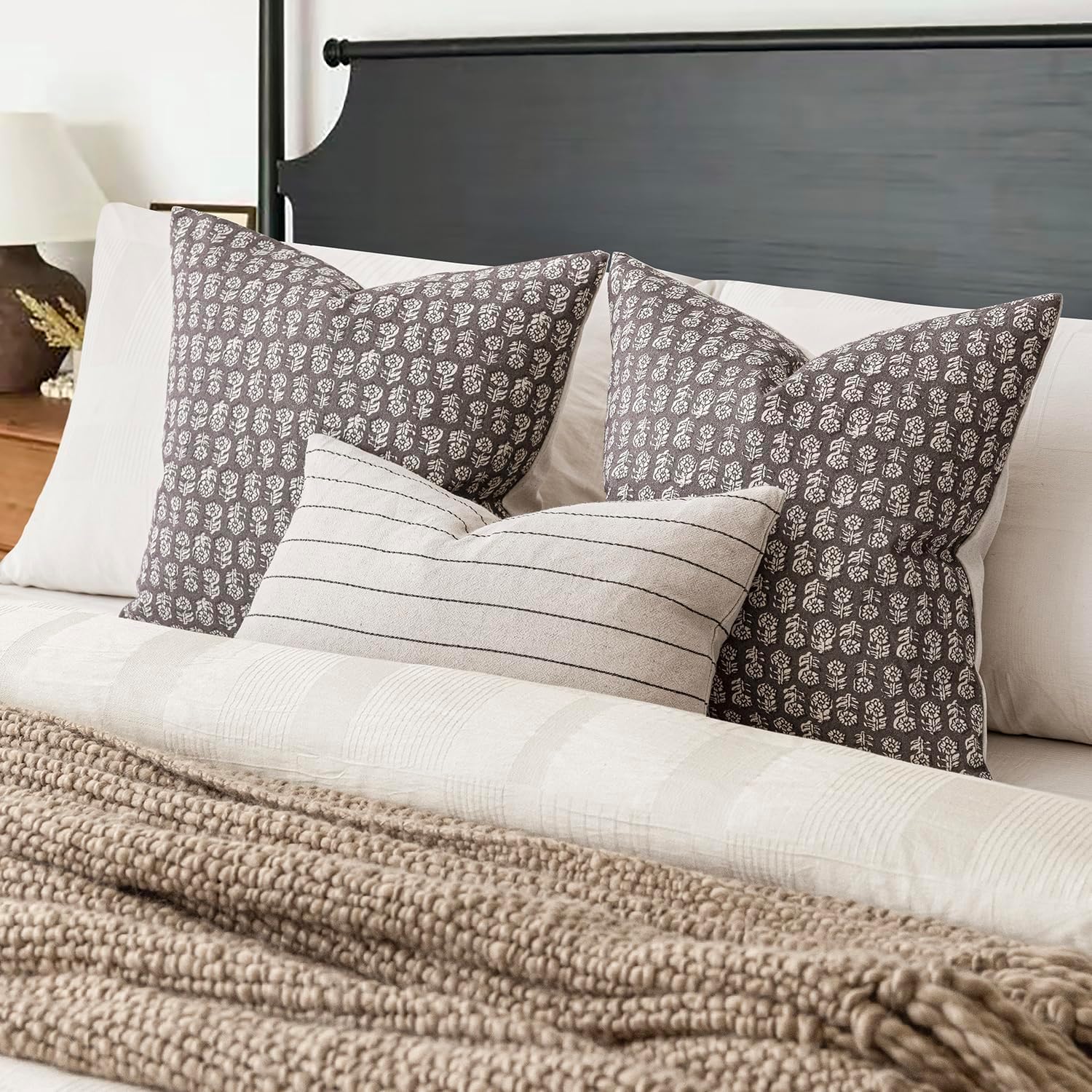 Foindtower Set of 2 Decorative Vintage Floral Print Throw Pillow Covers Neutral Modern Farmhouse Cushion Covers Boho Home Decor for Sofa Couch Chair Bedroom Living Room Outdoor,18×18 Inch,Rustic Gray