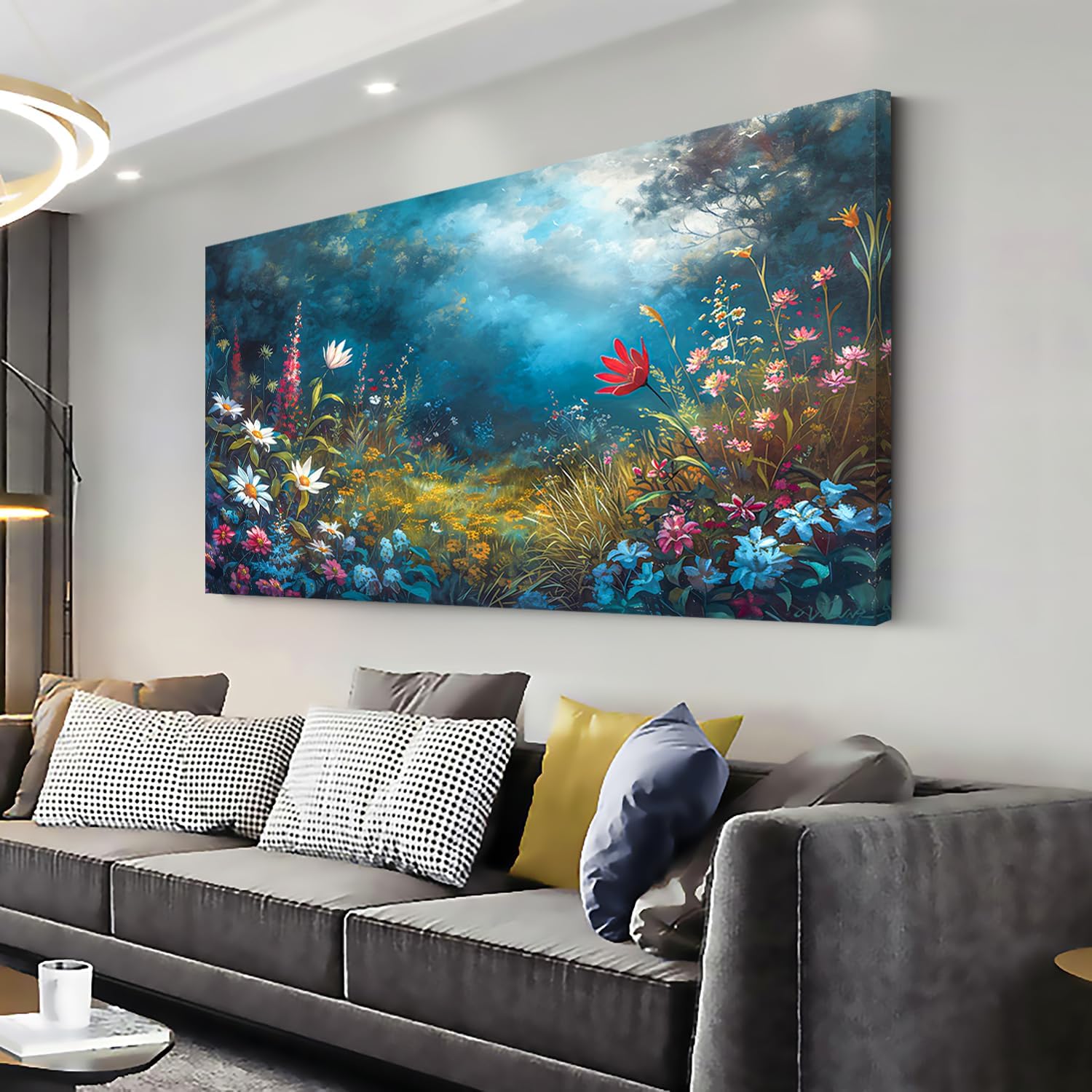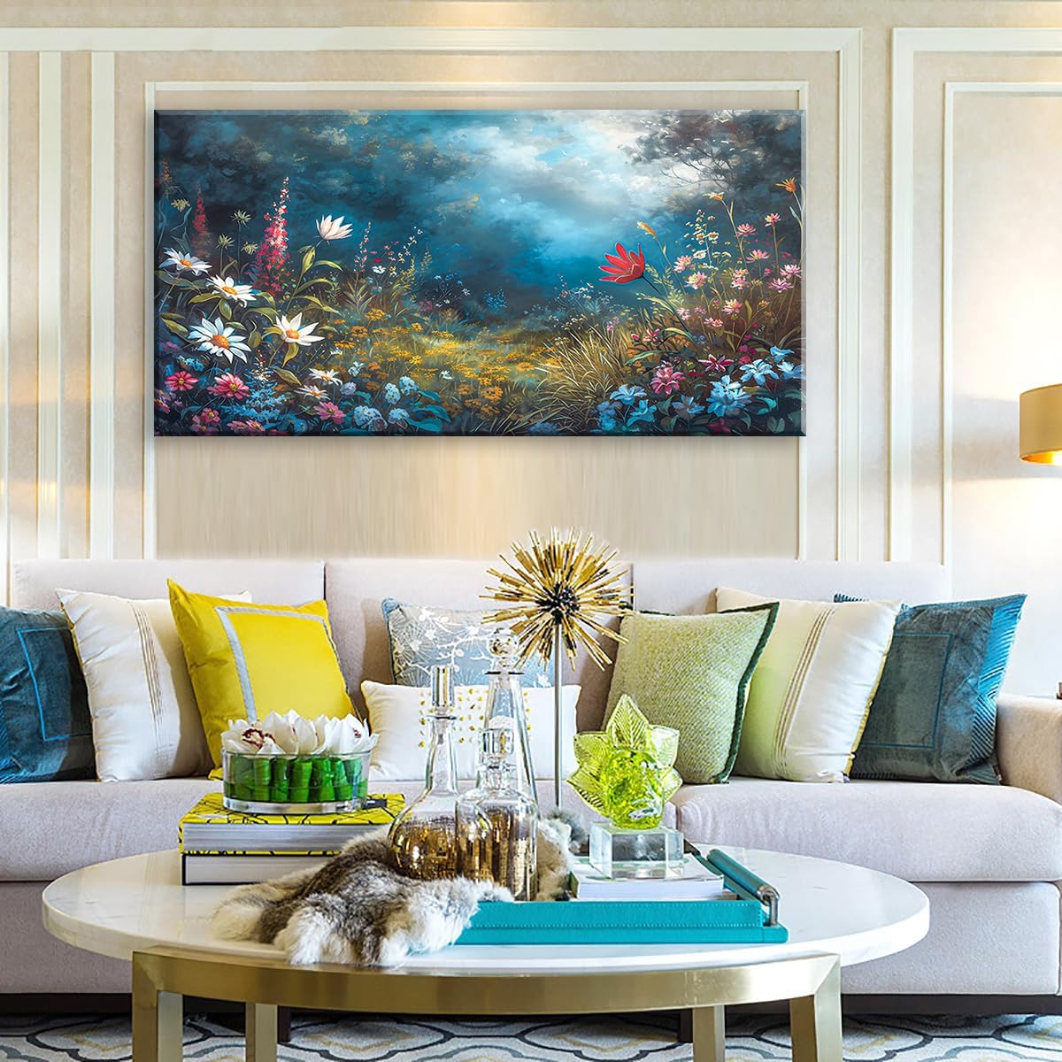 LASMOND Beautiful Colorful Grassland in Forest Landscape Wall Art Decor Artwork for Bedroom (24x48 Inches)