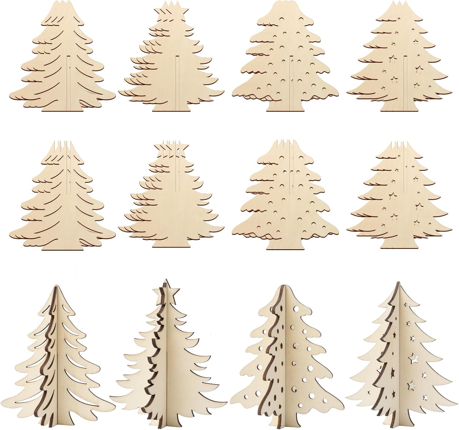 - Unique 3D Christmas Tree Shape Wood Crafts To Paint - These unfinished wood sheets are cut out to cute Christmas trees patterns, in sufficient quantity, and suitable size for you to use on DIY craft projects, you can also share them with your kids and friends.