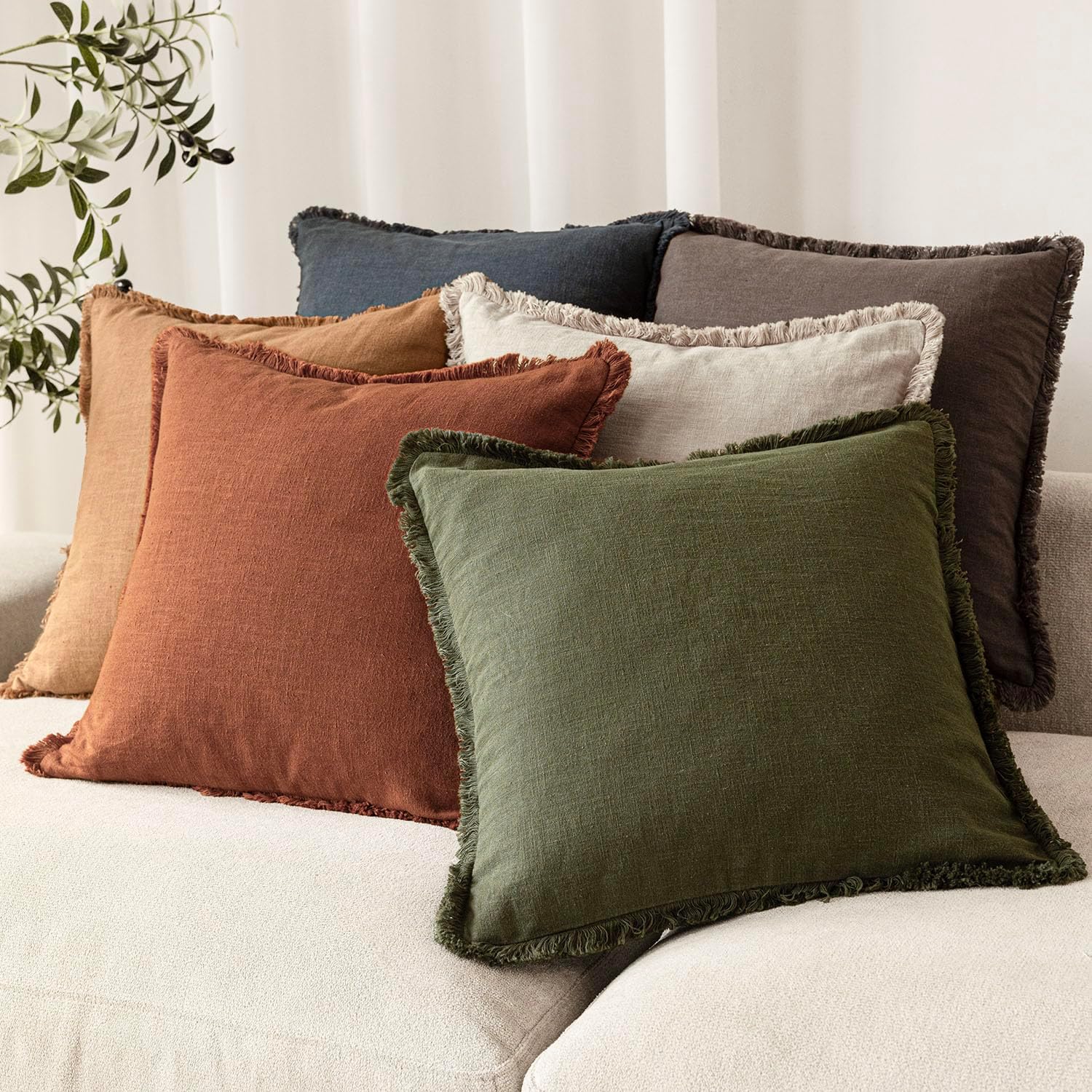 - 【Indoor & Outdoor Use】Available in a range of earthy, goes-with-anything hues for a look that works year-round. Fringed pillow covers is suitable for living room, bedroom, office, sunroom, den, kitchen benches, patio sets, nursery, car seat, floor, and more. You can put them on the sofa, bed, couch, outdoor, etc.