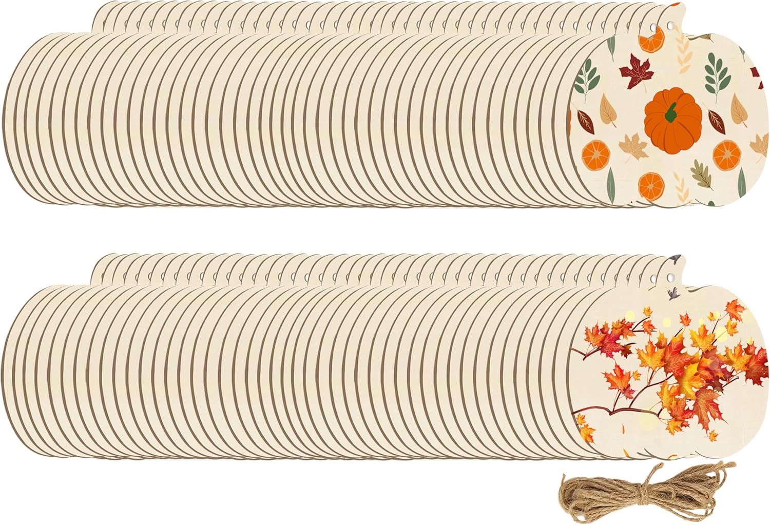 - Set Includes: Our Adboros wooden pumpkins for crafts are a ideal value set, with 90 pieces of unfinished wood pumpkin cutouts and 4 roll hemp rope included. This natural and classic design provides you with sufficient quantity to meet all your festival decorative needs. Share them with your family or friends and spread the joy of these joyful pumpkin wood hanging ornaments