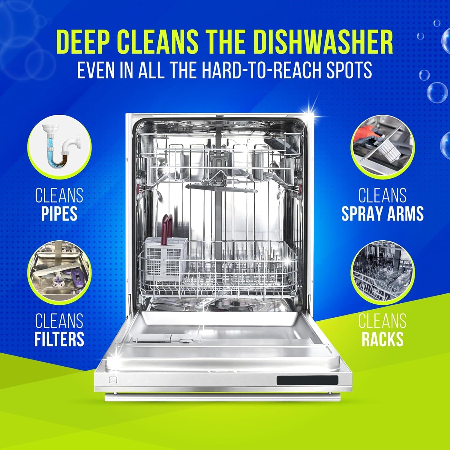 - Powerful Cleaning for Washing Machines & Dishwashers: This bundle combines septic-safe washing machine cleaner tablets and advanced dishwasher cleaner tablets, providing a comprehensive deep cleaning solution that eliminates residues, stains, grime, and limescale from both appliances.