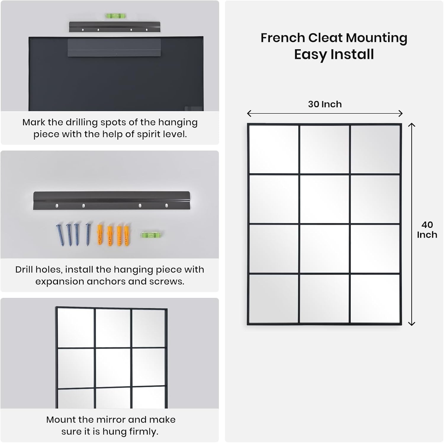 - Gifts For Everyone: This windowpane full length mirror is suitable for everyone you care about. A best gift idea for your mom, wife, partner, deaughter, sister and friend. Package including a full body mirror, installation accessiories and instruction