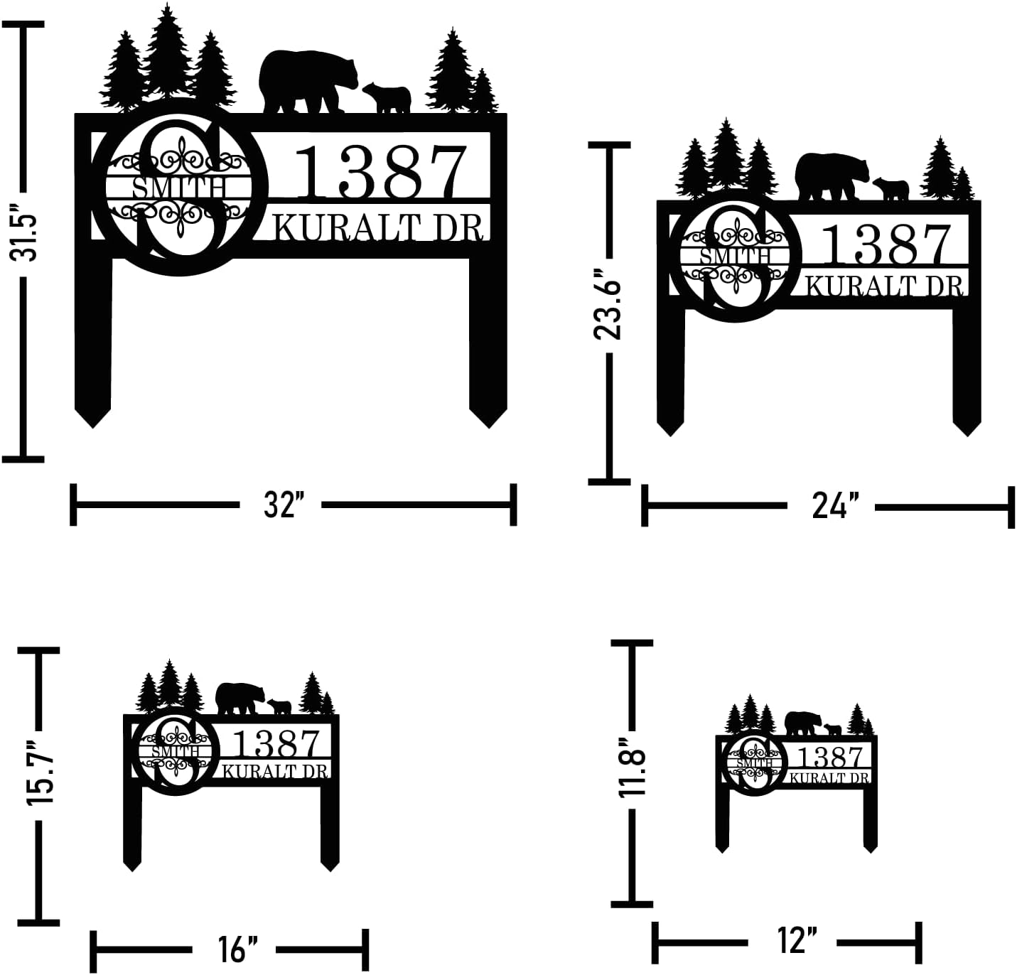 Personalized Custom Bear Wildlife Decor with Metal Stake - Address House Number Name Sign for Farmhouse, Yard, Camping