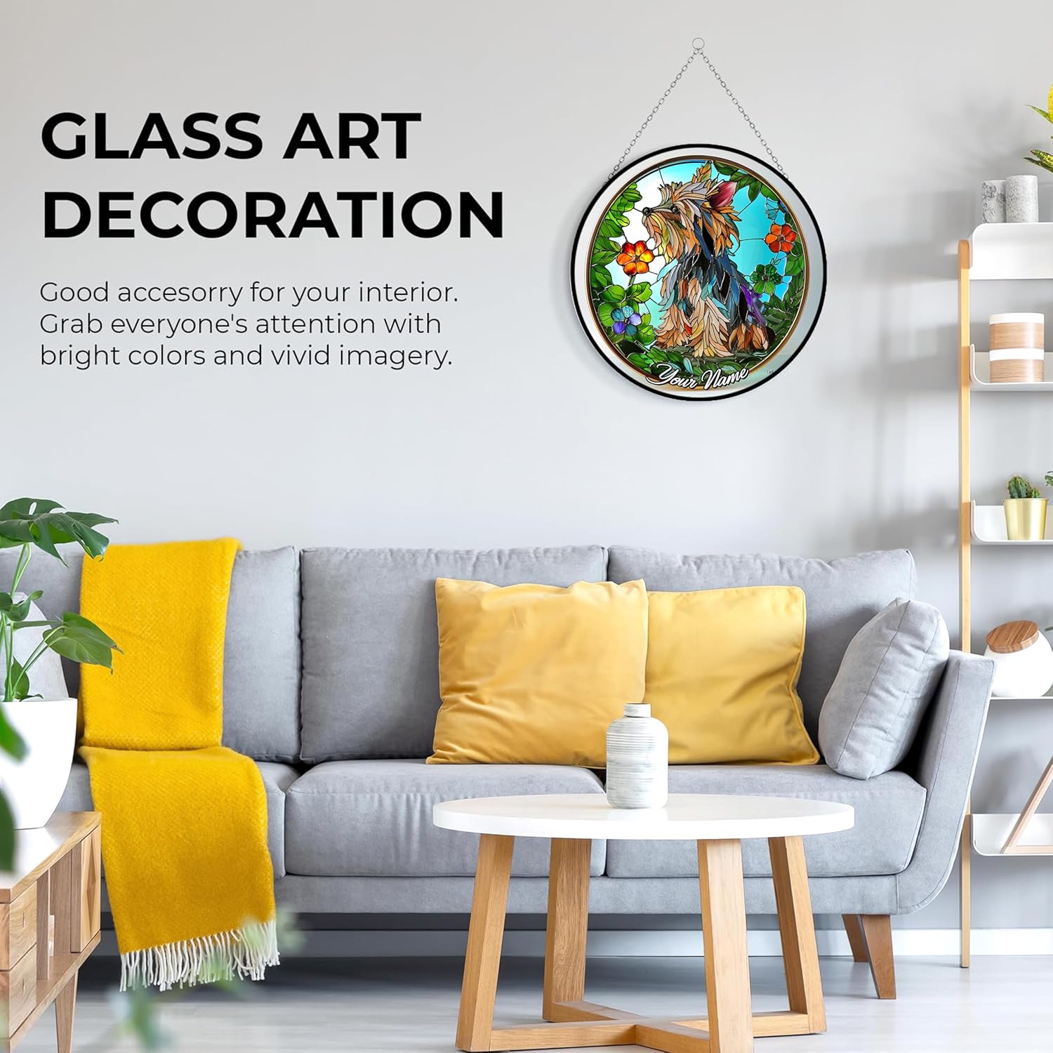 - [YORKIE DECOR] You can hang this stained glass panels on window, glass doors, porches, balconies, kitchens, children's rooms, cars, refrigerators, walls, and anywhere you want to display it indoors or outdoors