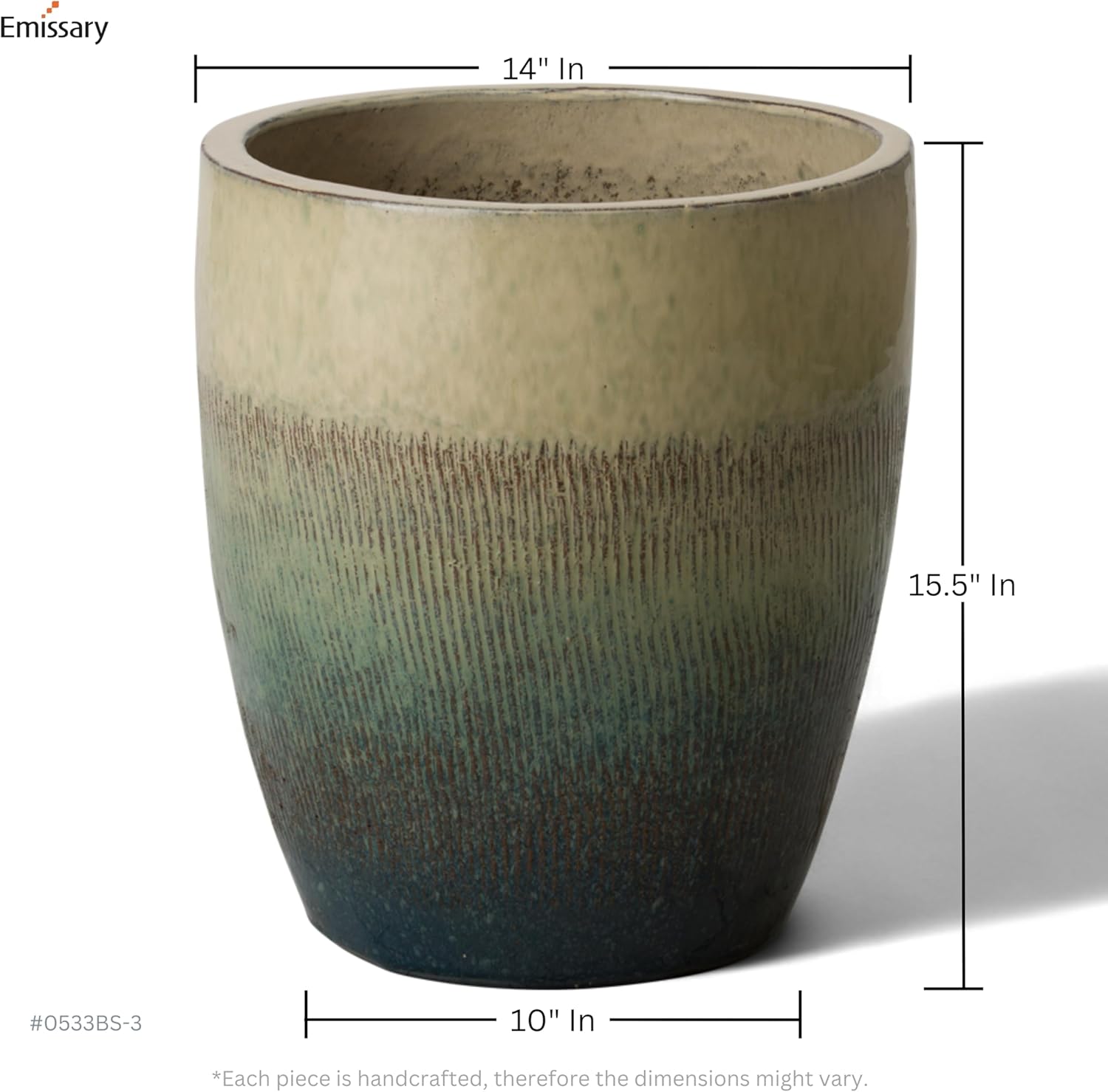 Emissary Home and Garden Bullet 11.5 in. Bayside Green Ceramic Round Planter (11.5 in. L x 11.5 in. W x 14 in. H) with Drainage Hole